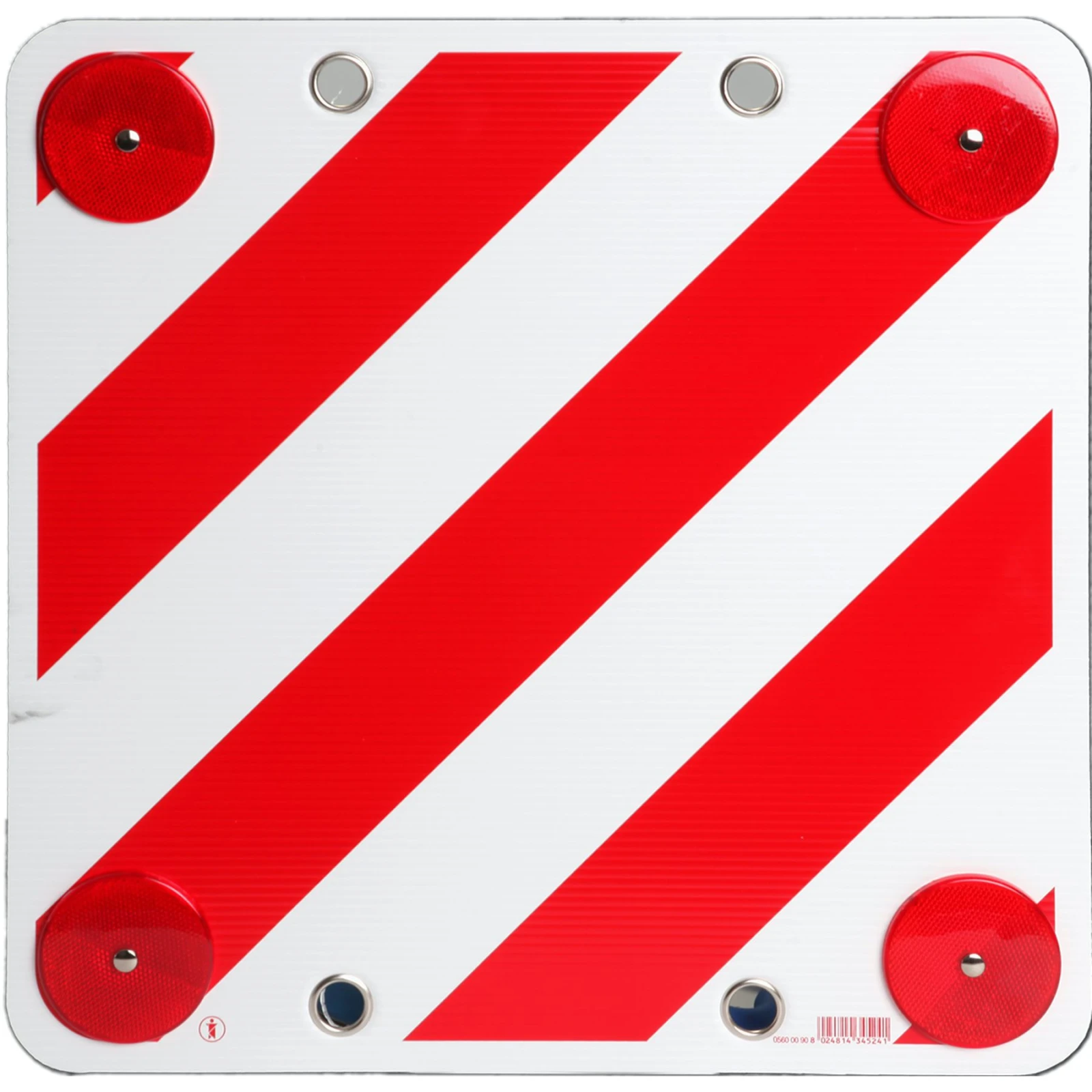 Zebra PL di Brunner è un pannello di segnalazione che assicura che i carichi sporgenti siano segnalati in modo sicuro. Non omologato per l'Italia.