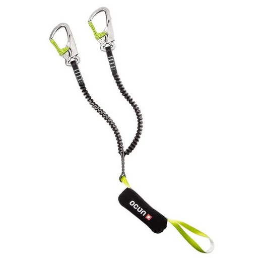 Universale dissipatore per cadute Ocún Captur con cordini elastici, certificazione EN 958:2024 e moschettoni da 30 kN per la massima sicurezza sulle vie ferrate.