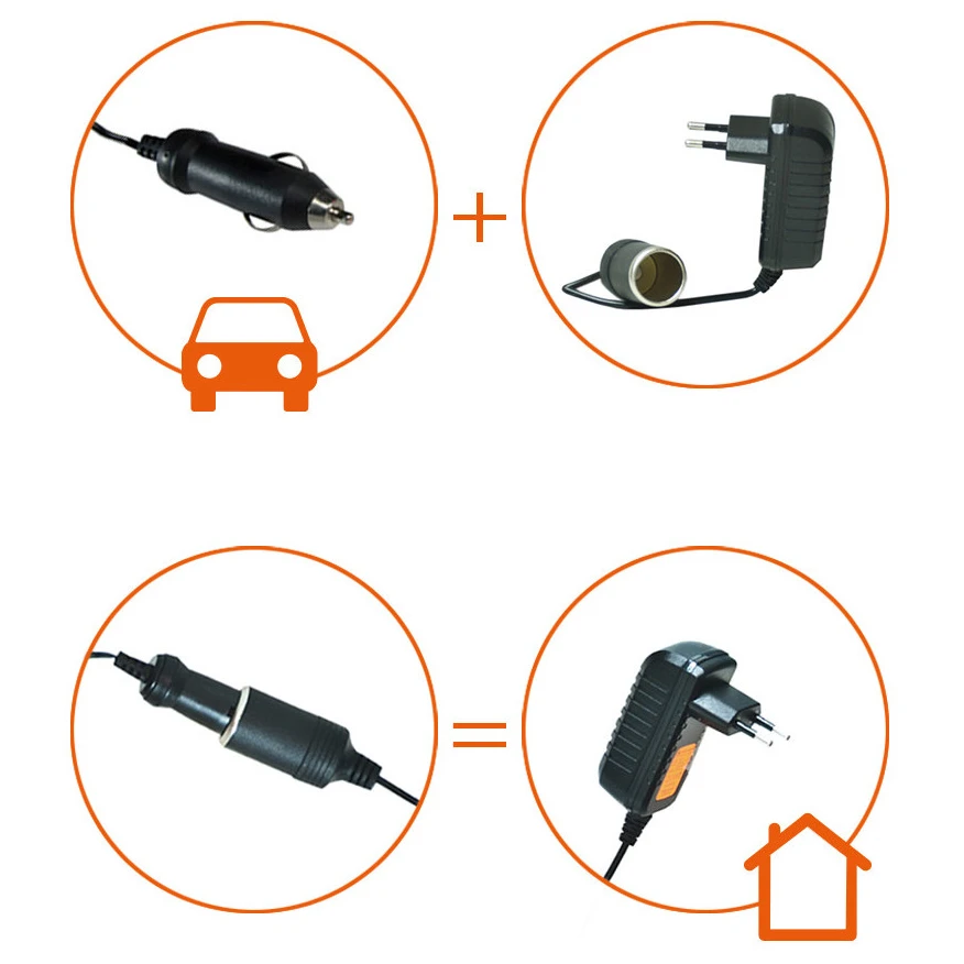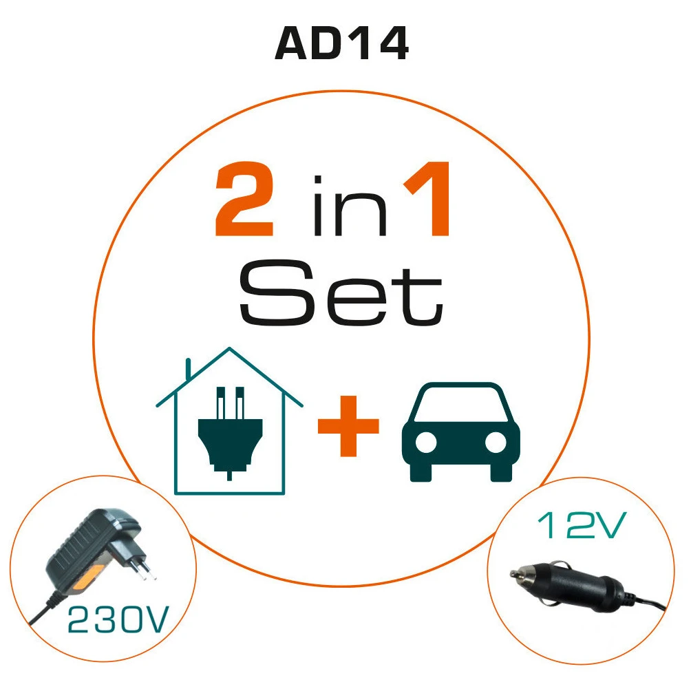 - set 2in1 - alimentazione tramite cavo da 12V con spina per auto e spina da 230V