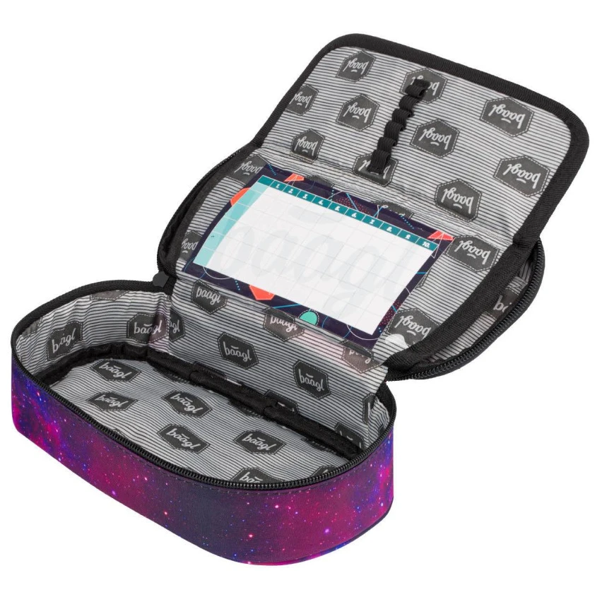 L'astuccio rigido Etue del marchio ceco Baagl è pensato per ragazze e ragazzi. L'astuccio è dotato di chiusura a zip, con doppia aletta ribaltabile, pratici elastici, una tasca con zip e una tasca per l'orario all'interno.