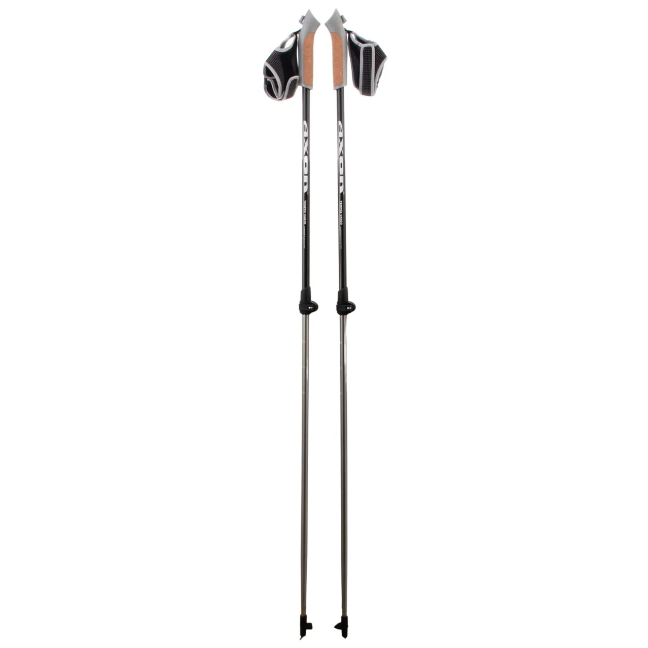 Bastoncini Nordic walking 2 sezioni VARIO del marchio ceco Axon, in resistente ALU 7075 con impugnatura in sughero, laccetto a scatto e punta in metallo duro per nordic walking. I bastoncini sono destinati alla camminata fitness.
