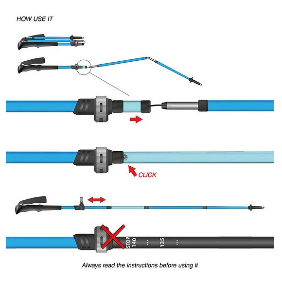 Il modo in cui i bastoncini sono confezionati in una dimensione di trasporto e, allo stesso tempo, la regolazione della loro lunghezza per l'utente specifico.