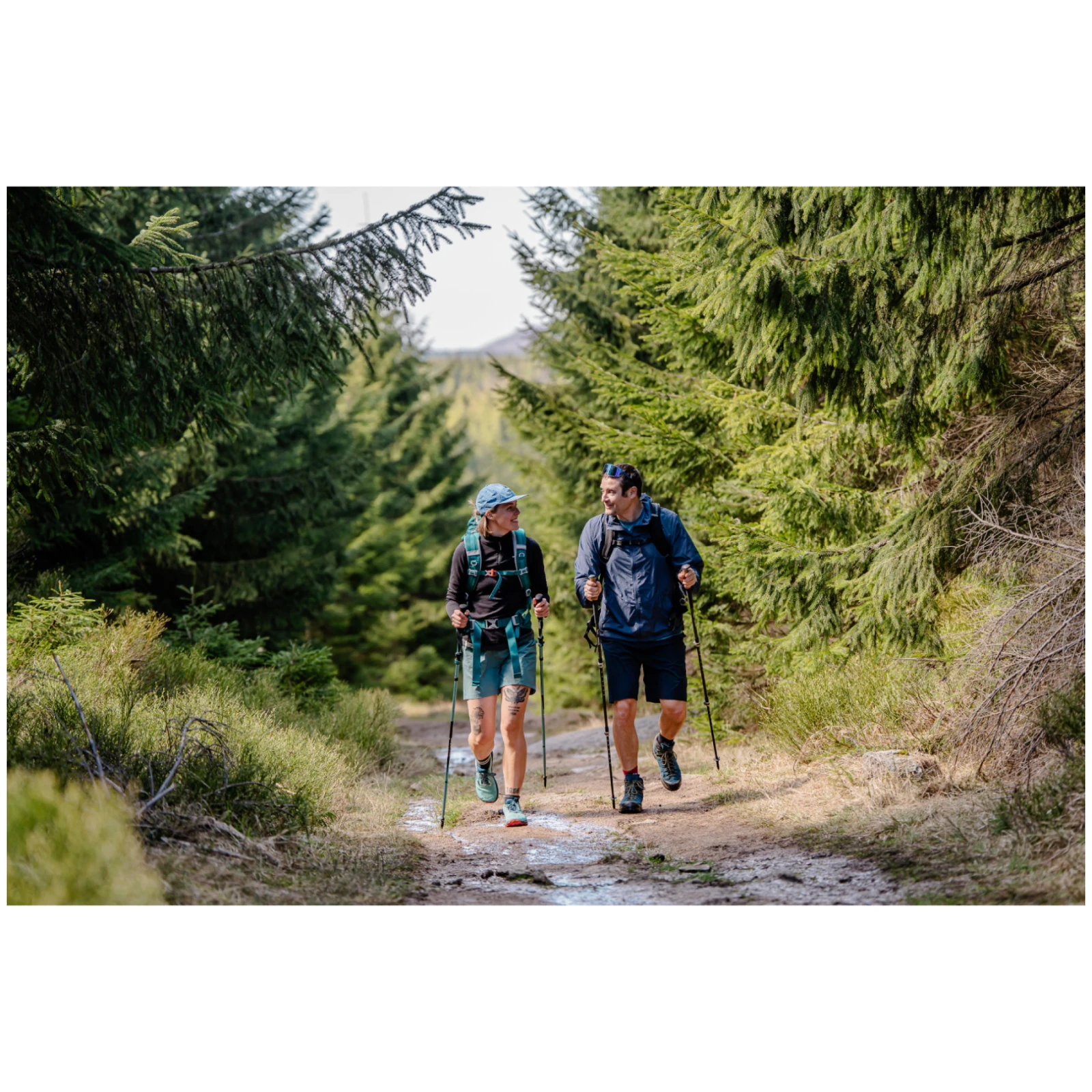 I bastoncini sono dotati di un'impugnatura con manico in sughero che si adatta comodamente alla mano, assorbe bene il sudore e garantisce comfort anche durante le salite più impegnative. La sua lunghezza estesa consente di riposizionare rapidamente la mano durante la salita o su terreni accidentati, senza dover regolare la lunghezza del bastoncino: la soluzione ideale quando la pendenza del percorso cambia frequentemente. Il passante regolabile senza cuciture consente di adattarlo esattamente alla mano e riduce il rischio di vesciche.