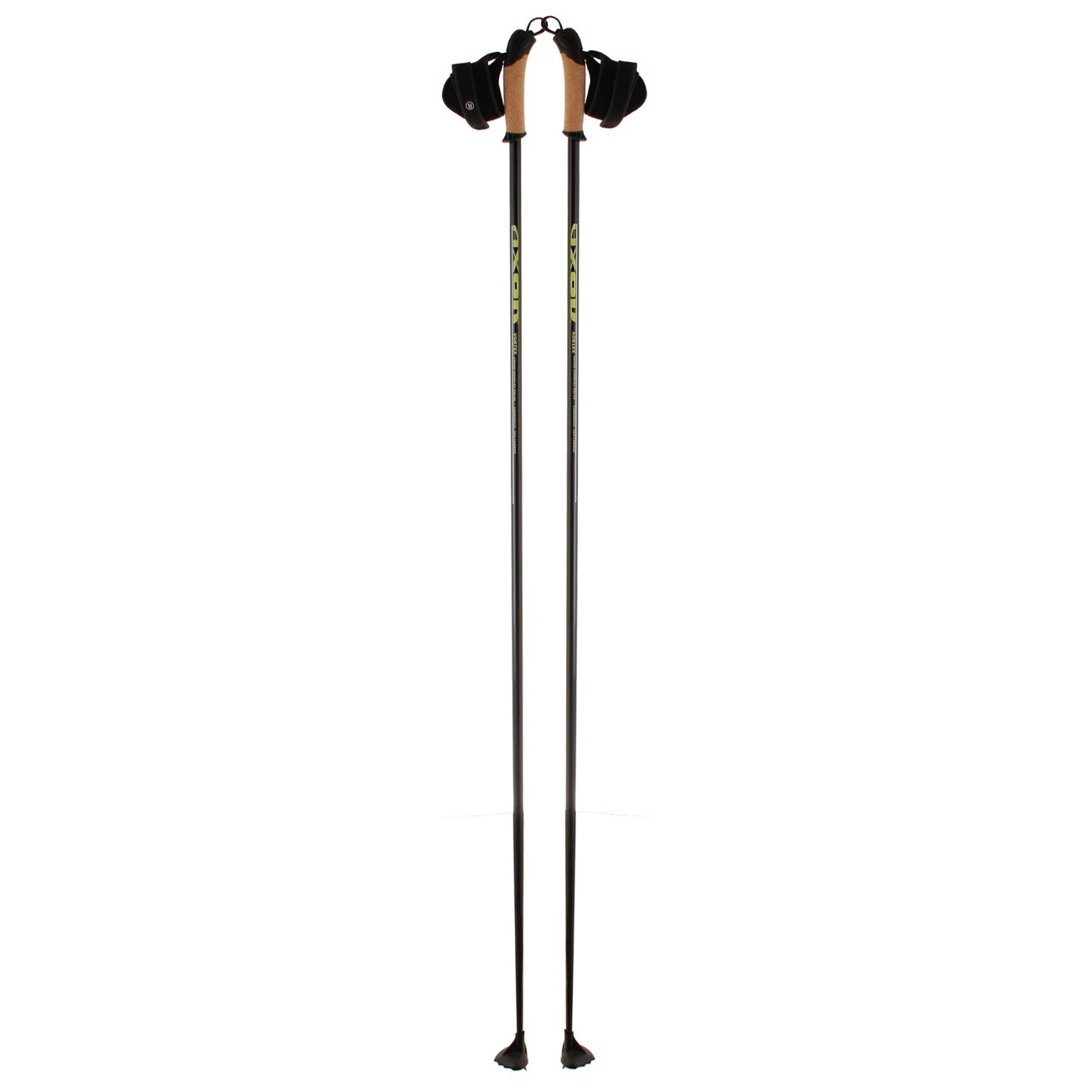 Bastoncini da sci di fondo in carbonio AKTIV PROFI del marchio ceco Axon, per pattinatori e classici, realizzati in 50% carbonio con impugnatura in sughero, passante regolabile e rotella da 60 mm di diametro.