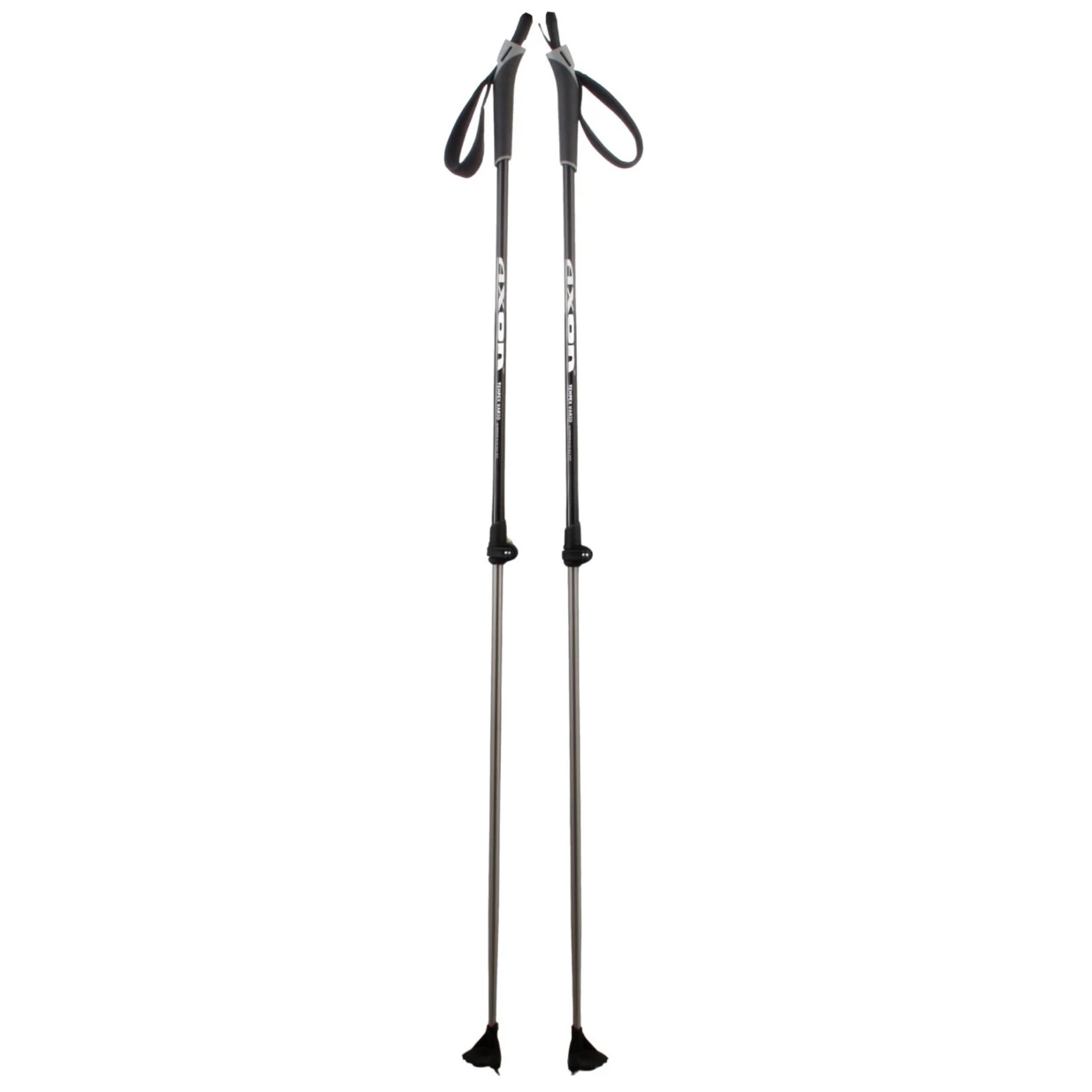 Bastoncini da trekking in alluminio regolabili in lunghezza TEMPEX VARIO del marchio ceco Axon, per sciatori amatoriali, realizzati in resistente ALU 7075 con impugnatura in plastica morbida, passante sportivo e rotella di diametro 60mm.