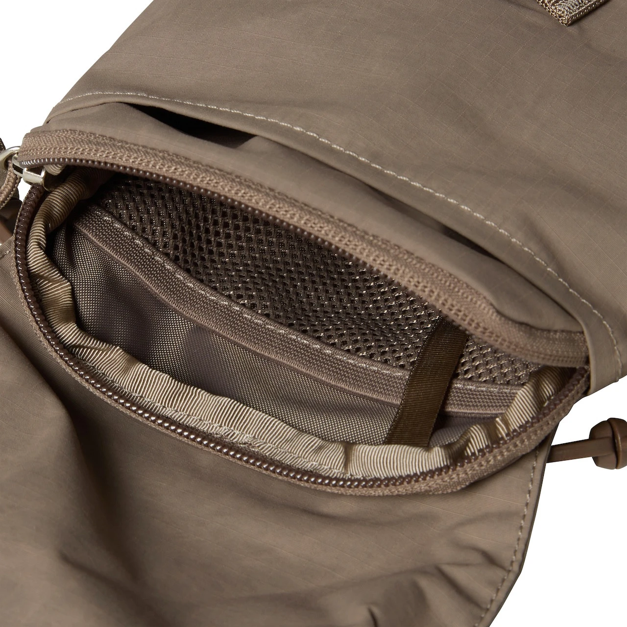 È realizzata in nylon ripstop altamente resistente.La tasca principale con zip è completata da una tasca frontale con bottone automatico e da una tasca sul retro. All'interno troverai una tasca interna in rete e un gancio per le chiavi. La tracolla regolabile e rimovibile si adatta perfettamente al tuo corpo.