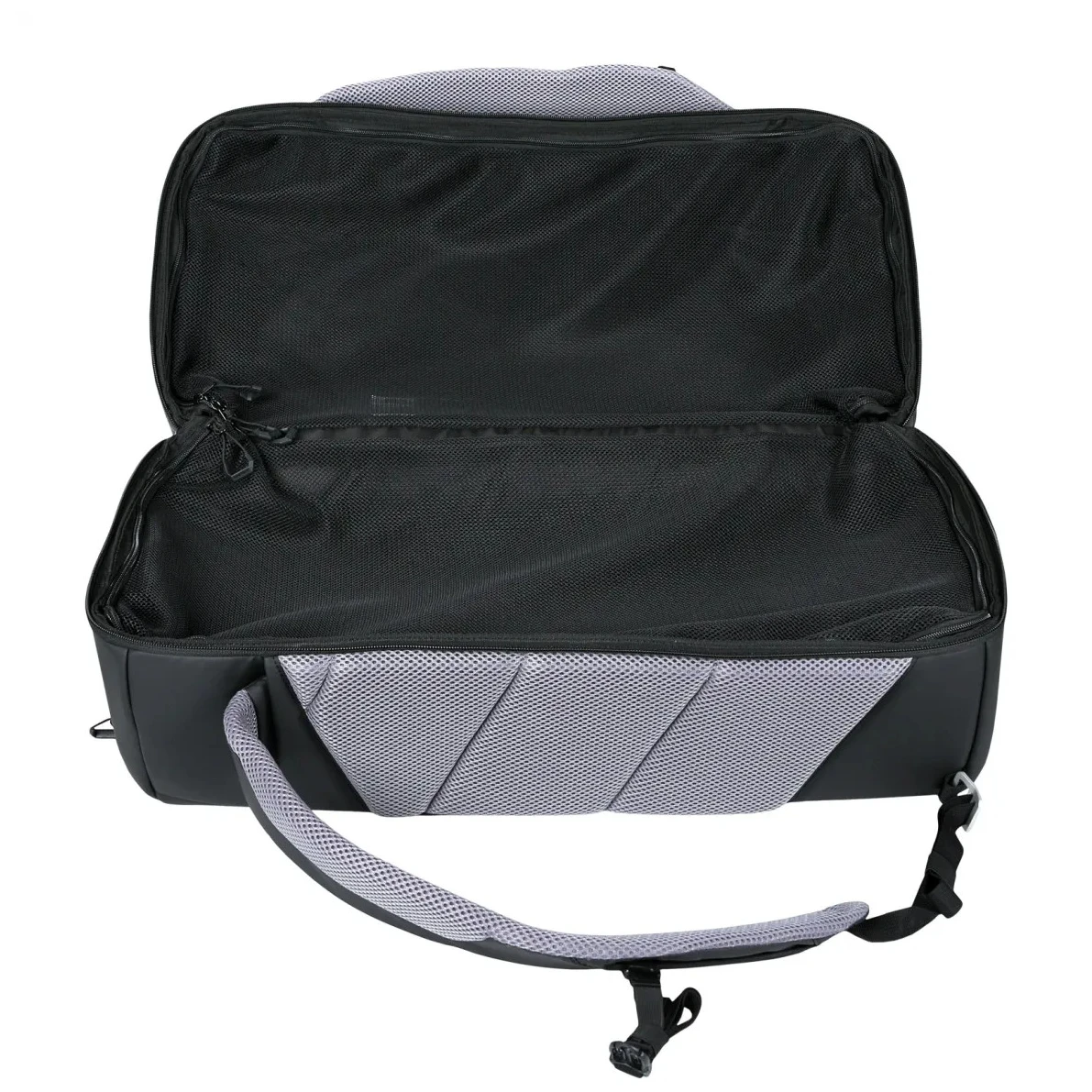 La borsa è realizzata in resistente nylon 600D con trattamento impermeabile in TPU e il comfort durante il trasporto è garantito dal sistema dorsale rinforzato AirMesh. Gli spallacci possono essere nascosti quando la si indossa come una borsa da viaggio classica, mentre il sistema di trasporto completato dalla fascia toracica consente un trasporto confortevole anche durante i viaggi più lunghi. Due scomparti principali hanno un'ampia apertura con zip per facilitare l'imballaggio e l'accesso ai tuoi oggetti.