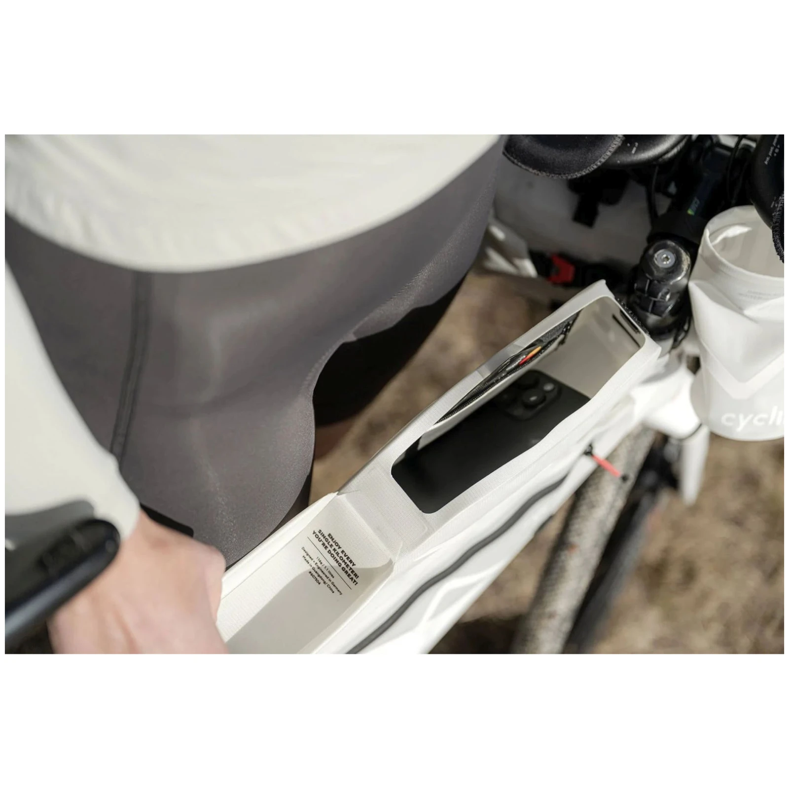 La borsa da tubo superiore Cyclite è una pratica borsa per il tubo superiore del telaio, che ti permette di avere sempre a portata di mano gli oggetti importanti. È perfetta per portare con te barrette energetiche, gel, telefono o piccoli attrezzi durante le uscite su strada o gravel.