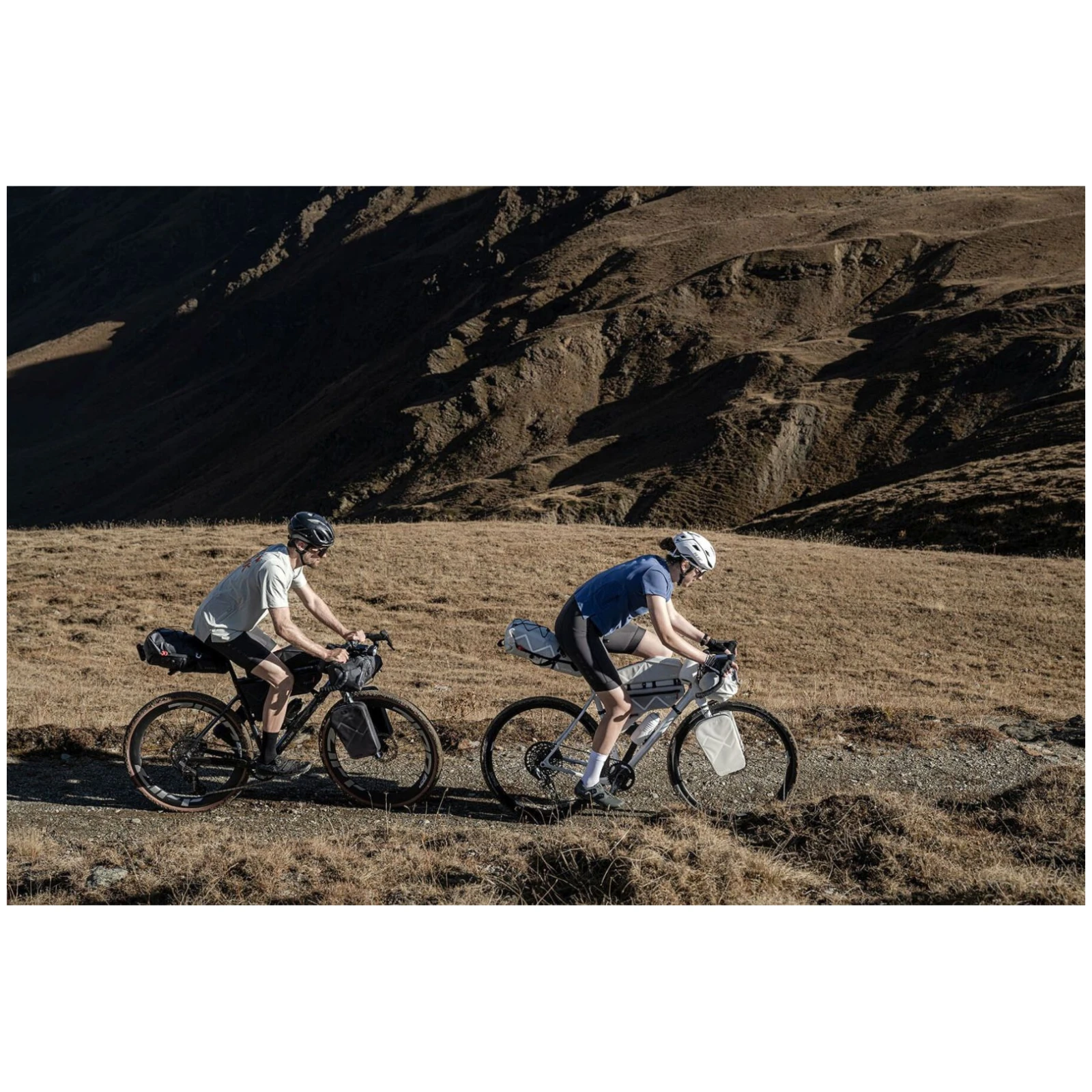 Nonostante il volume di 2,2 l, la borsa rimane leggera e stabile anche a pieno carico. Una pratica uscita per cavi consente di far passare cavi o tubi all'esterno della borsa. Grazie alla possibilità di fissaggio tramite cinghie o direttamente al telaio (bolt-on), è compatibile con un'ampia gamma di biciclette.