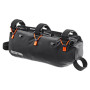 Oltre che per una bottiglia d'acqua, il Frame-Pack Toptube può essere utilizzato anche per riporre oggetti più pesanti come attrezzi, pali della tenda o cibo. Stivare gli oggetti più pesanti in questa borsa aiuta a mantenere basso il baricentro, anche a pieno carico. Diverse robuste cinghie in velcro assicurano un collegamento sicuro e protetto tra il telaio e la borsa. Queste cinghie sono posizionate in modo specifico lungo il perimetro e consentono una regolazione individuale in base alle dimensioni della bicicletta.