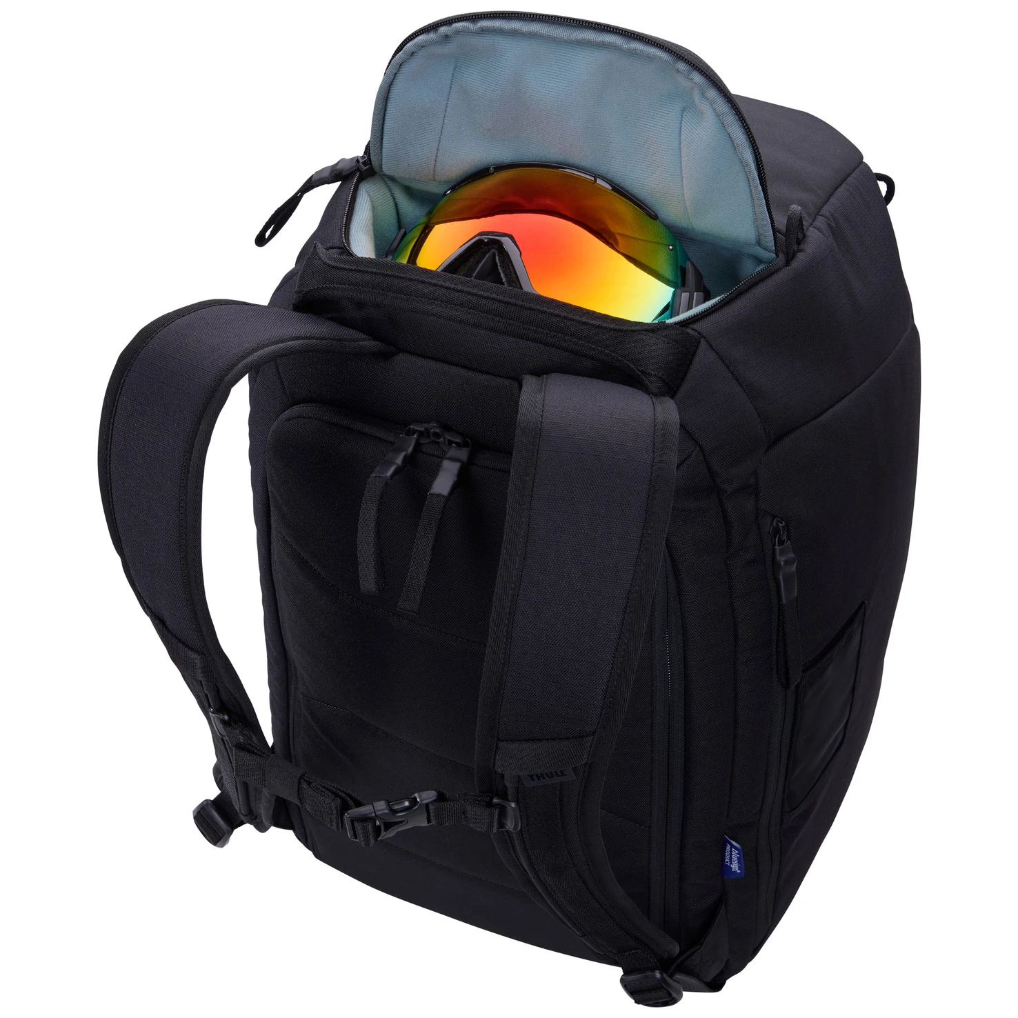 Non manca una tasca separata imbottita per gli occhiali con fodera morbida, spazio per casco, guanti e abbigliamento e tasche ad accesso rapido per piccoli oggetti. Lo zaino consente l'accesso dall'alto e dal basso per un facile imballaggio e manipolazione. Il materiale resistente con certificazione bluesign® garantisce una lunga durata e una produzione più ecologica. Comode cinghie e maniglie facilitano il trasporto, mentre le cerniere bloccabili aumentano la sicurezza durante il viaggio.