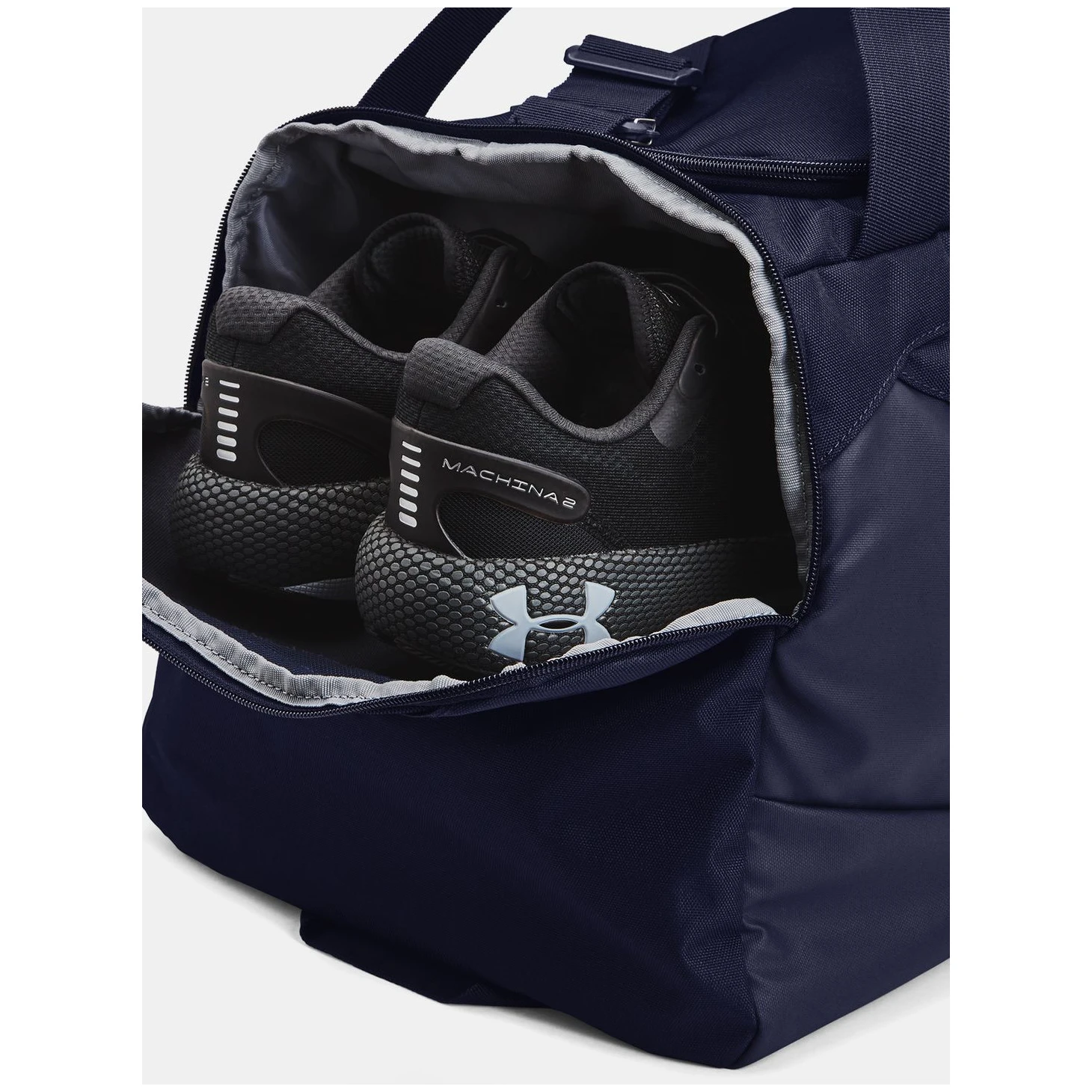 Spaziosa borsa sportiva a tracolla Under ArmourStorm l'Undeniable 5.0 Duffle MD è realizzato in materiale che protegge i vostri effetti personali dall'acqua. Il fondo e i lati sono realizzati in materiale extra resistente alle forature. Il layout della borsa si divide in un'ampia tasca traspirante per abiti o scarpe e in ulteriori tasche interne per una più facile organizzazione. Le comode orecchie per il trasporto e la lunga tracolla regolabile lo rendono facile da maneggiare e da trasportare. Passante per agganciare altri oggetti per il trasporto.