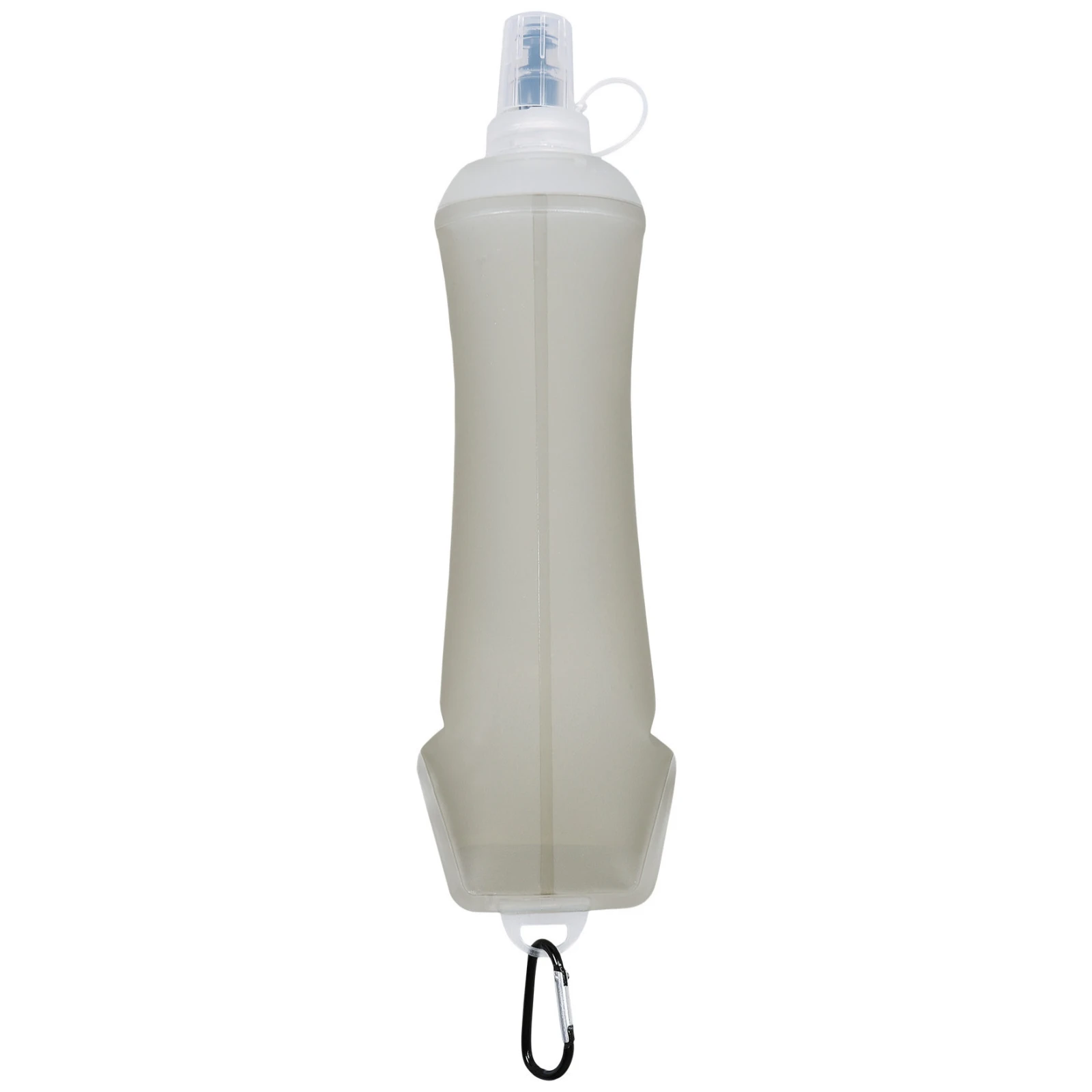 La borraccia è realizzata in materiale 100% TPU, che è flessibile, resistente e allo stesso tempo senza BPA, quindi è adatta per un uso regolare. Dopo aver bevuto il contenuto, può essere facilmente piegata e occupa pochissimo spazio, il che apprezzerai durante movimenti prolungati e in spazi ristretti. È dotata di un beccuccio a morso con tappo richiudibile che impedisce la fuoriuscita indesiderata di liquidi. Ciò rende l'idratazione rapida e comoda anche durante il movimento. Include anche una moschettone rimovibile, che consente un facile aggancio allo zaino o all'attrezzatura. La borraccia è inoltre compatibile con i gilet da corsa, dove può essere riposta comodamente nelle tasche anteriori.