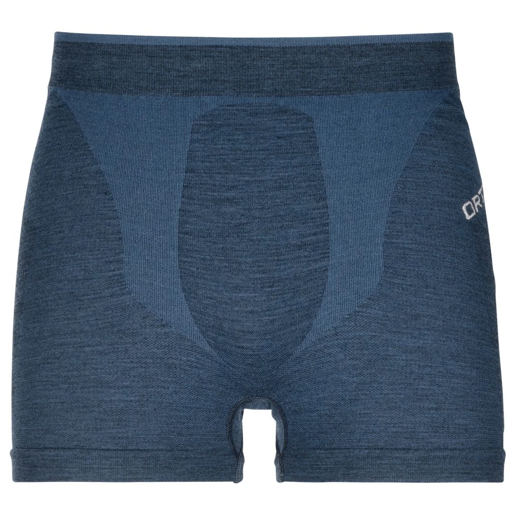 Il Boxer 230 Competition M da uomo di Ortovox è realizzato con una tecnica di lavorazione a maglia circolare senza cuciture, in modo che quando fa freddo e fa fatica, ogni parte del corpo sia coperta dal giusto spessore di lana merino. La struttura di base a coste è costituita da merino da 190 g/m², che conferisce al boxer funzionale flessibilità per la massima libertà di movimento.