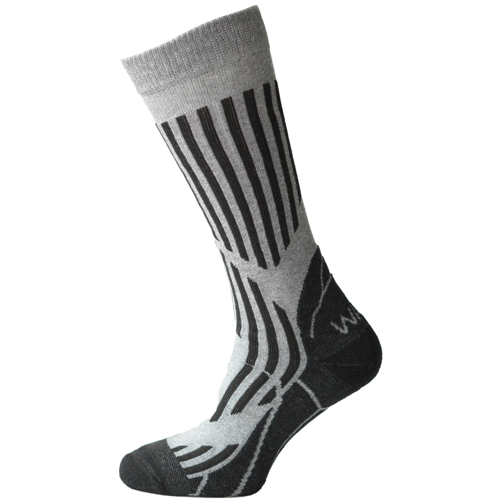 Merino è la lana più pregiata utilizzata per le calze, ha perfette proprietà isolanti ed è comoda da indossare. Le fibre sintetiche eliminano l'umidità molto rapidamente e la calza vi farà sentire asciutti e comodi.