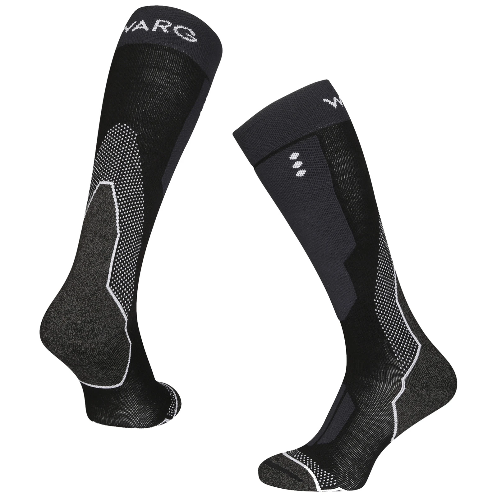 Le calze Warg Merino SkiAlp sono progettate appositamente per lo sci e lo sci alpinismo. Grazie alla lana merino, regolano perfettamente la temperatura e mantengono il calore anche quando sono bagnati. Sono rinforzati nelle parti più sollecitate della caviglia, dello stinco, del piede e dell'achilleo per proteggere dalle fastidiose vesciche.