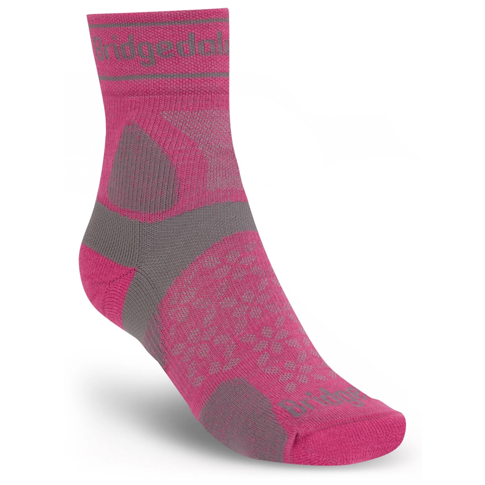Le calze Bridgedale Trail Run Lightweight T2 Merino Sport 3/4 Crew da donna sono progettate specificamente per il trail running, dove una combinazione di leggerezza, traspirabilità e una calzata sicura nello scarpone è fondamentale. L'altezza 3/4 Crew offre una migliore protezione della caviglia e della parte inferiore del polpaccio da sporco e abrasioni sul terreno.