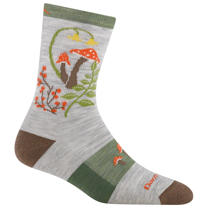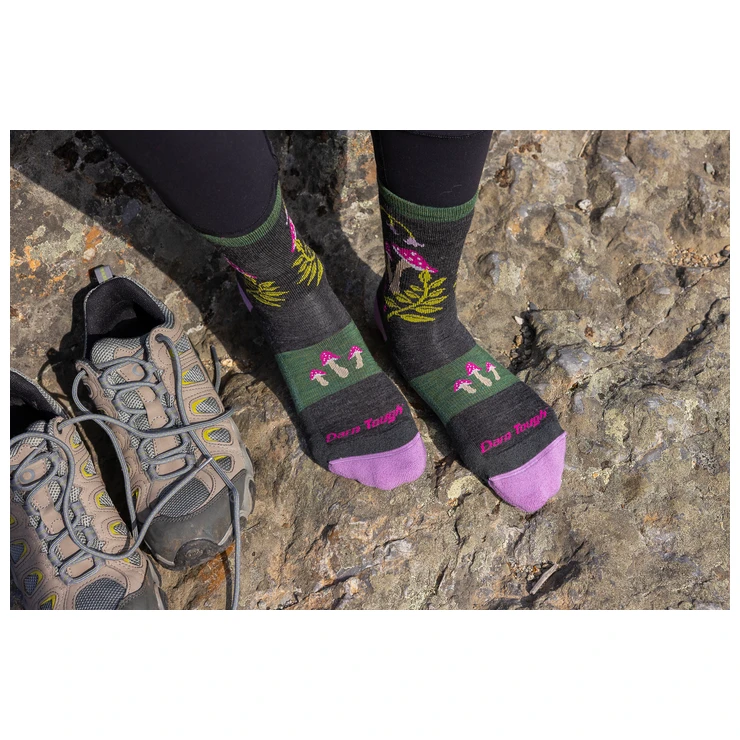 Le calze da donna Mellow Mushrooms Micro Crew Leggere con imbottitura combinano un imbottitura leggera, traspirabilità e una vestibilità affidabile per il comfort durante le escursioni sui sentieri. L'altezza micro crew corrisponde a circa 19 cm dal tallone alla caviglia e i calzini arrivano a circa 13 cm sopra lo scarponcino da trekking basso, o leggermente sopra il bordo di uno scarpone da trekking classico.