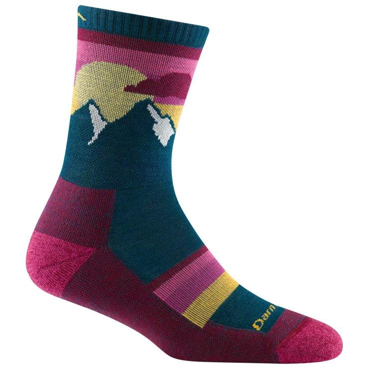 Le calze da donna Sunset Ledge Micro Crew Lightweight With Cushion hanno una "micro crew" altezza, che in media misura 19 cm dal tallone al bordo e arriva circa 13 cm sopra le calzature da trekking basse, o appena sopra gli scarponi classici. Questa altezza offre una migliore protezione del piede durante la camminata su terreni accidentati e una maggiore stabilità nella scarpa.