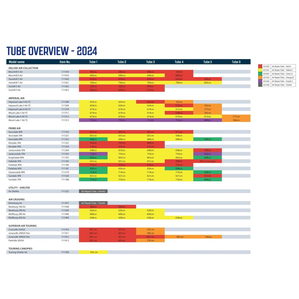 Camera d'aria di ricambio - Giallo E del marchio danese Outwell è stato progettato per sostituire una camera d'aria danneggiata della vostra tenda gonfiabile. Il kit contiene una camera d'aria di ricambio lunga 6-7,55 m, una valvola dell'aria, uno strumento per la sostituzione della valvola e 2 nastri adesivi. È possibile scegliere la lunghezza del tubo in base alle proprie esigenze e arrotolare semplicemente la parte in eccesso. Il diametro della camera d'aria è di 16 cm. Per le istruzioni complete sulla sostituzione, vedere il video allegato qui sotto. La galleria mostra quindi un'anteprima della posizione del tubo dell'aria, in questo caso contrassegnato in giallo.
