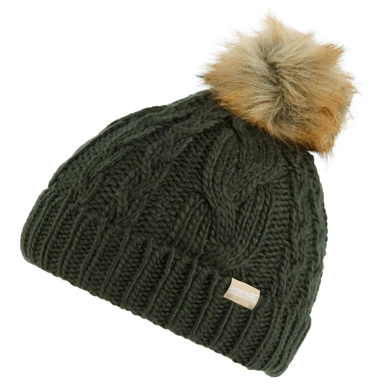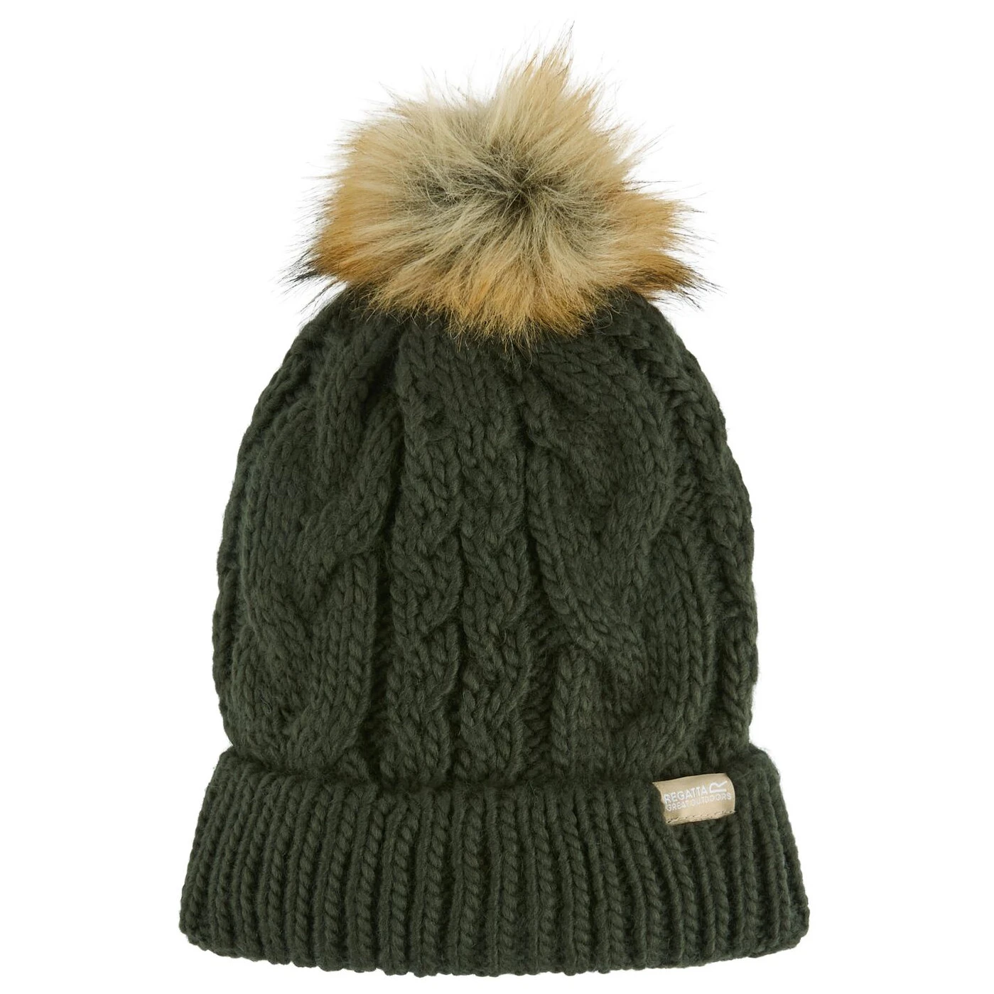 Women's Lovella Hat VI di Regatta combina una classica maglia a cavi con un pompon in pelliccia sintetica di tendenza, offrendo non solo stile ma anche un caldo comfort nel clima invernale.