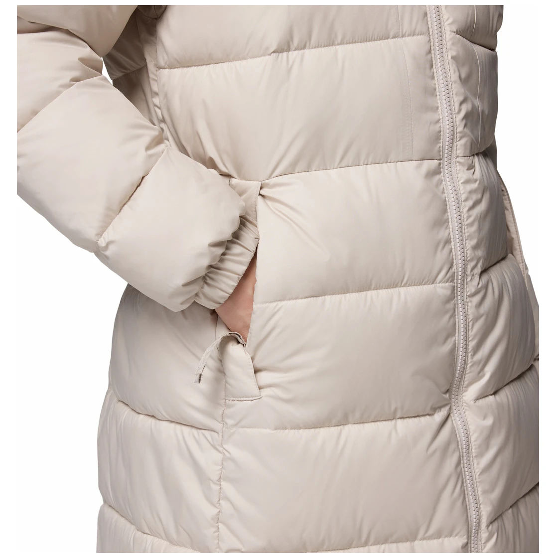 Il cappotto è dotato di cappuccio regolabile con protezione per il mento, coulisse in vita per una vestibilità ideale e bottoni laterali per una maggiore flessibilità. Le pratiche tasche con zip per le mani e la tasca interna di sicurezza assicurano una sistemazione comoda e sicura per gli oggetti di valore, mentre i polsini elastici mantengono il calore all'interno.