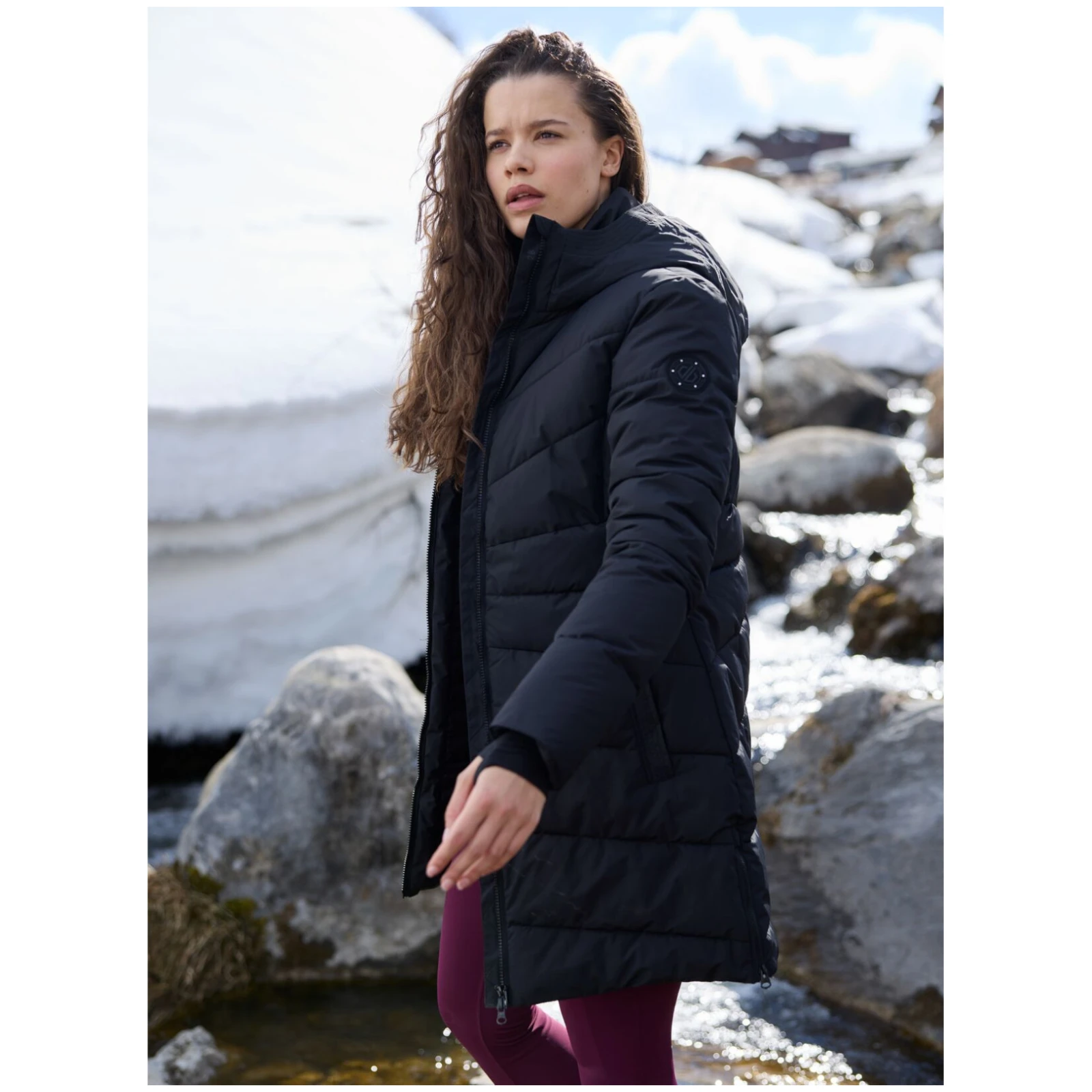 Il cappotto da donna Striking V Jacket Dare 2b è imbottito, impermeabile e traspirante, con cristalli Swarovski, orli ventilati e tasche per una protezione elegante in inverno.
