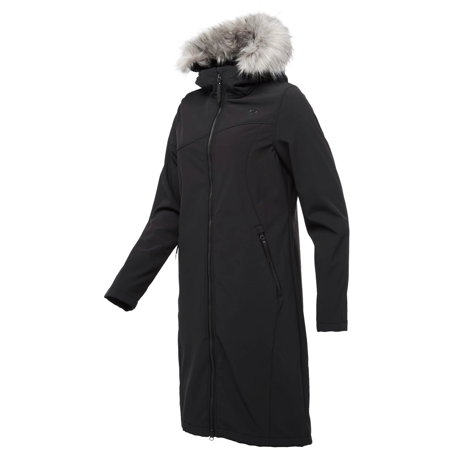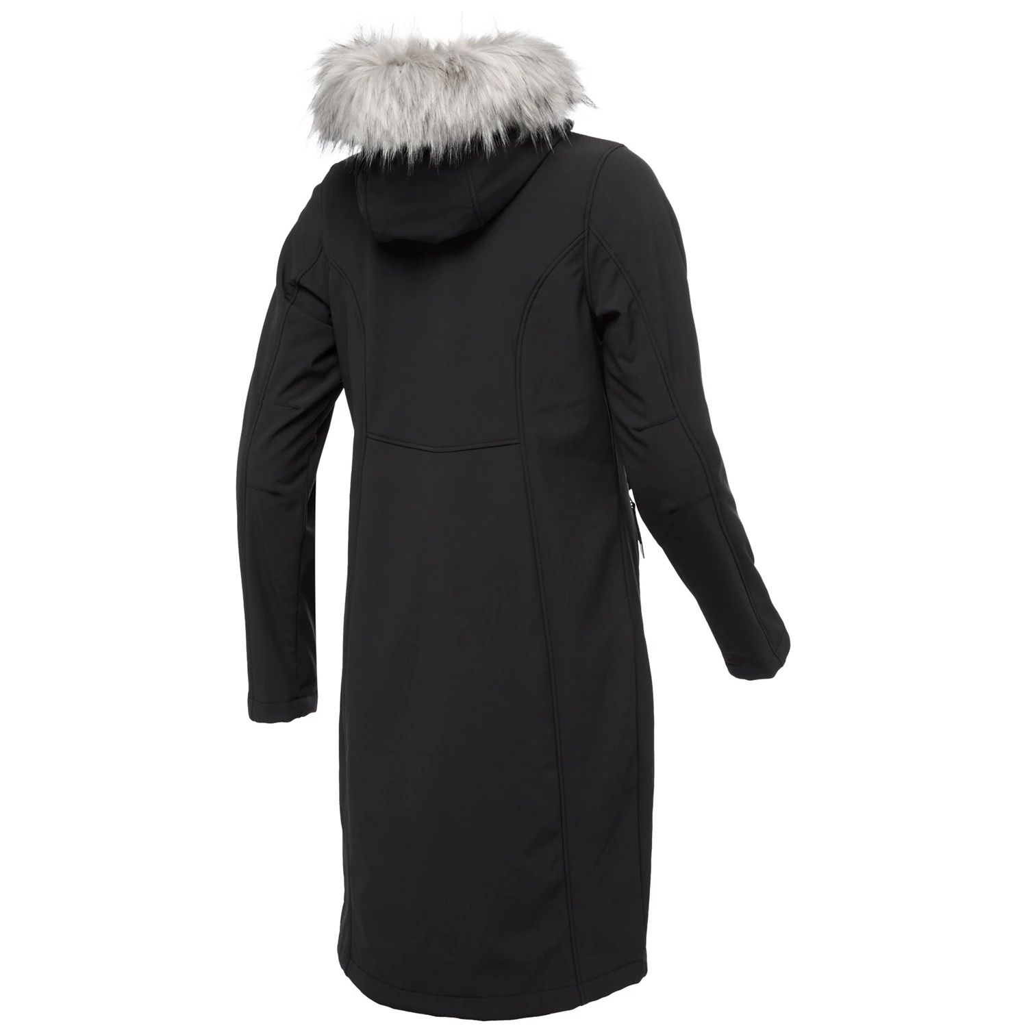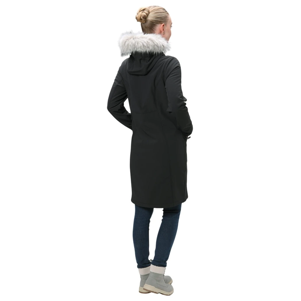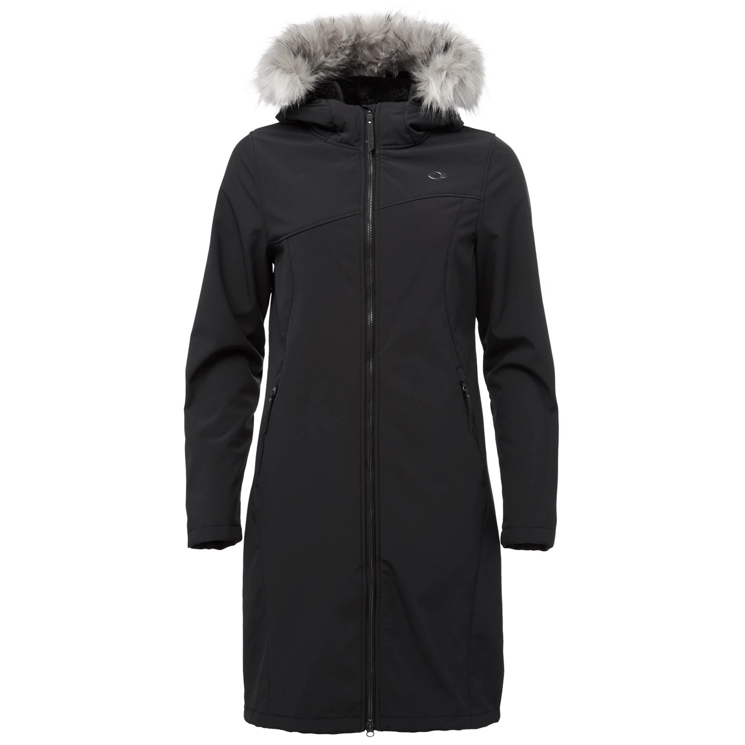 Il cappotto ha un cappuccio fisso con pelliccia morbida non rimovibile, che non solo riscalda, ma aggiunge anche un aspetto elegante. La pratica cerniera a due vie in osso facilita l'indossamento e la ventilazione, sia che tu stia passeggiando per la città o andando nella natura. Due tasche esterne offrono spazio per tutto il necessario, mentre il taglio classico e l'orlo inferiore dritto assicurano che il cappotto si adatti bene anche sopra un maglione più spesso.