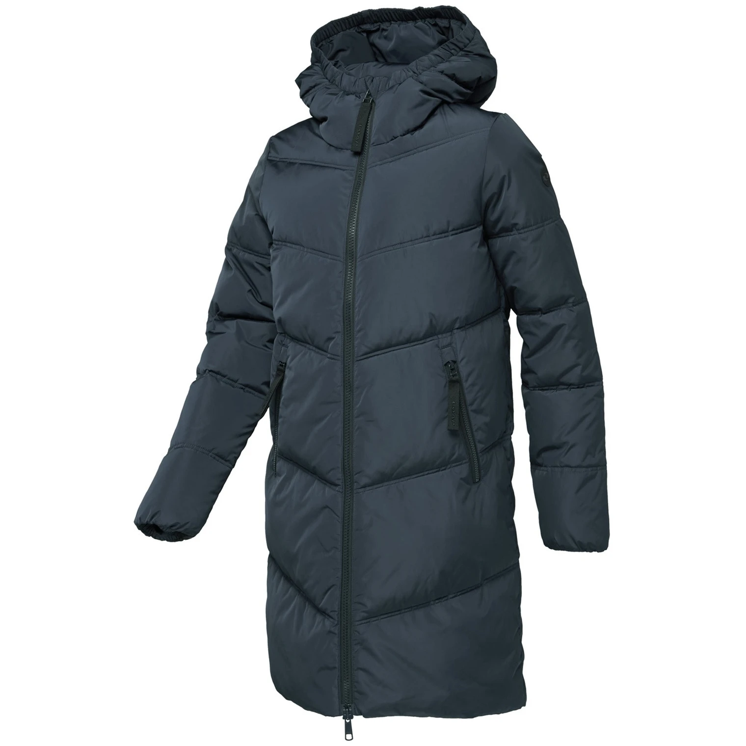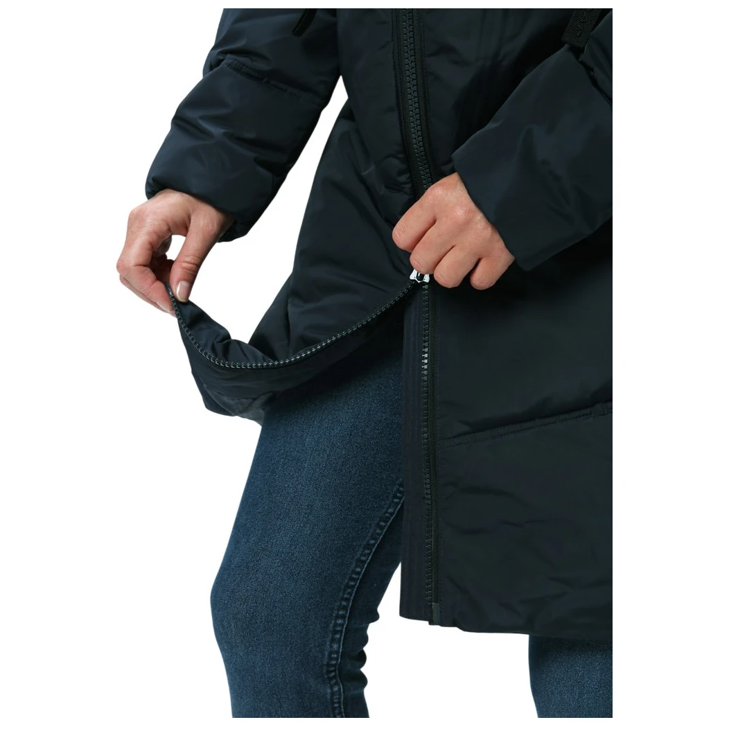 Il materiale con rivestimento DryTech respinge l'acqua, quindi il cappotto protegge in modo affidabile da neve leggera o pioggia. Il cappuccio regolabile fisso offre ulteriore protezione da vento e freddo. Il cappotto si chiude con una zip a doppio cursore in osso, che non è solo pratica, ma anche interessante dal punto di vista del design.