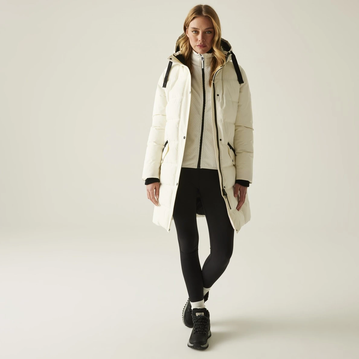 Il cappotto Eryn di Regatta combina un design elegante e caratteristiche funzionali che apprezzerai in città come durante le passeggiate nella natura. Il materiale esterno leggero in poliestere con trattamento idrorepellente DWR protegge dall'umidità, mentre l'imbottitura premium riciclata Feather Free da 230 g/m² offre un calore affidabile senza l'uso di piume.
