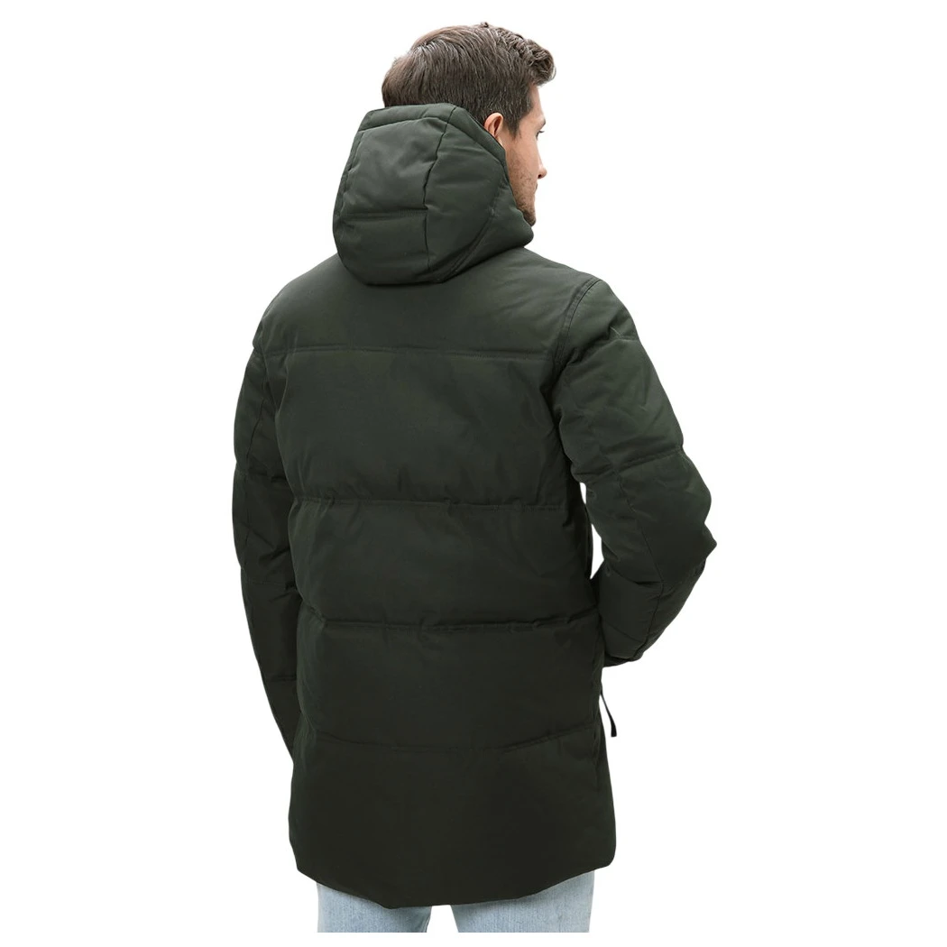Il cappotto ha un cappuccio fisso e regolabile che ti protegge dal freddo e dalla pioggerellina e un elastico interno ai polsini che impedisce la dispersione del calore. Un dettaglio pratico è il fondo posteriore leggermente allungato, che offre una migliore copertura della schiena.