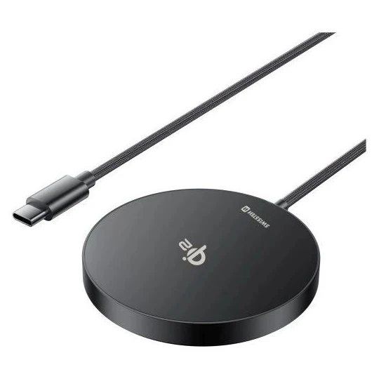 Moderno carregatore wireless Swissten MagPuck con supporto Qi2 offre una ricarica rapida, sicura ed elegante per iPhone, Samsung e altri dispositivi compatibili.