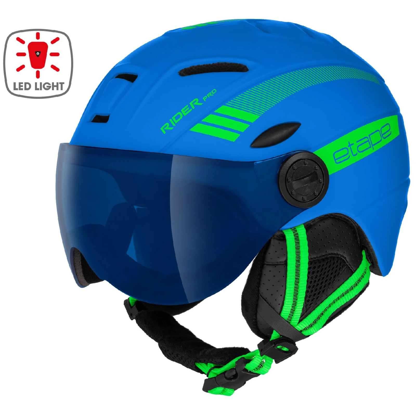 Casco da sci per bambini Etape Rider Pro Light è dotato di un'innovativa illuminazione posteriore a LED, che si fissa saldamente al casco e aumenta così la sicurezza del tuo bambino sulle piste. I morbidi copriorecchie si adattano perfettamente alla calotta del casco per garantire un'esperienza di utilizzo confortevole, senza compromettere la protezione della testa.I 18 fori di ventilazione assicurano una ventilazione di qualità con regolazione continua.