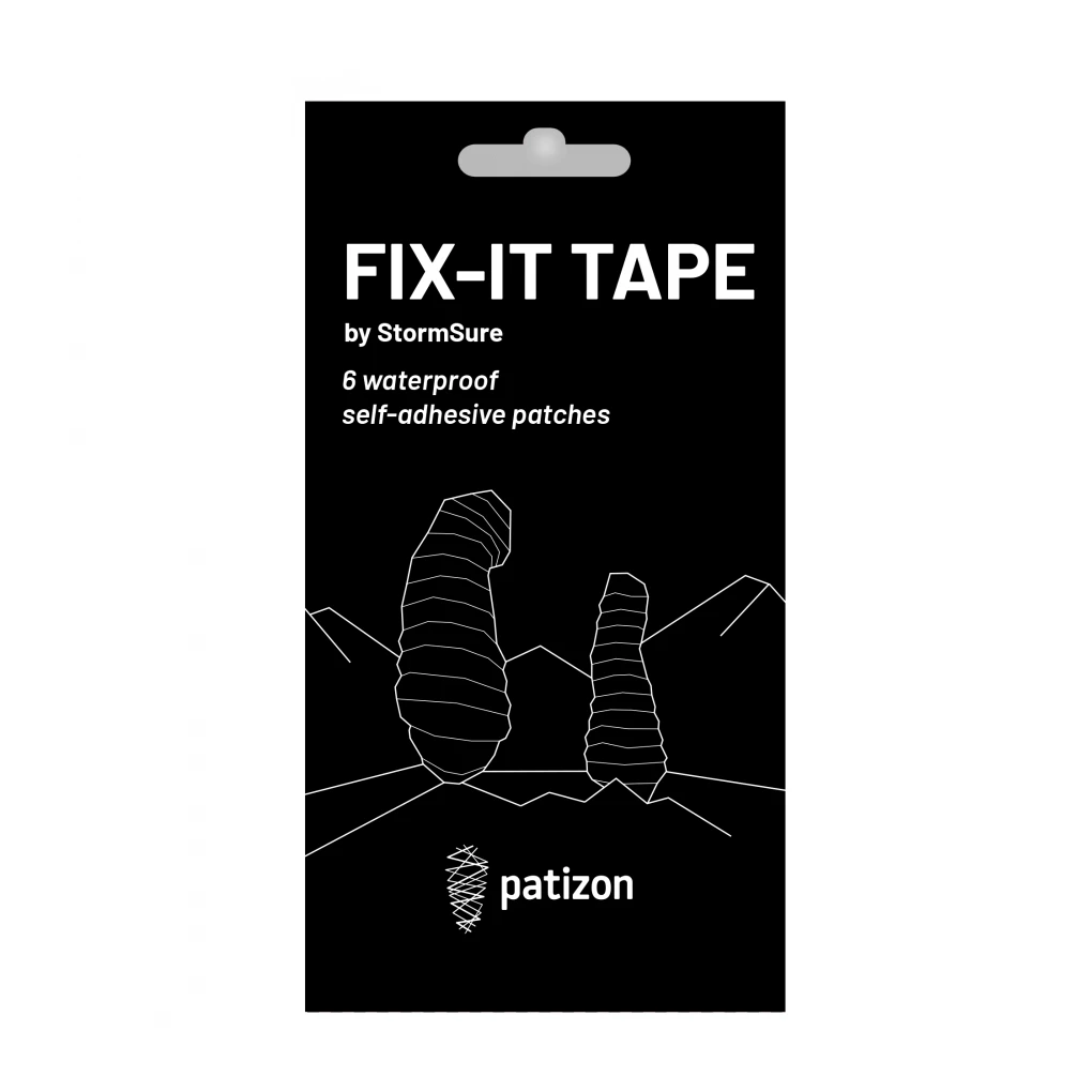 Toppe autoadesive in poliuretano resistenti, flessibili e trasparenti Patizon Fix it Tape, progettate per la riparazione di emergenza di attrezzature funzionali. Il materiale delle toppe è opaco e trasparente. Adatte, tra l'altro, per riparare giacche impermeabili, in piuma e altri giubbotti isolanti, sacchi a pelo o tende (ad eccezione di quelle siliconate).