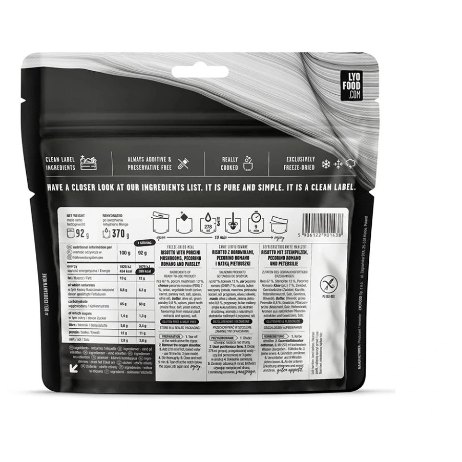 Lyofood Risotto ai funghi porcini di Ines Papert è un pasto da spedizione leggero, ideale per escursioni, campeggio e avventure.