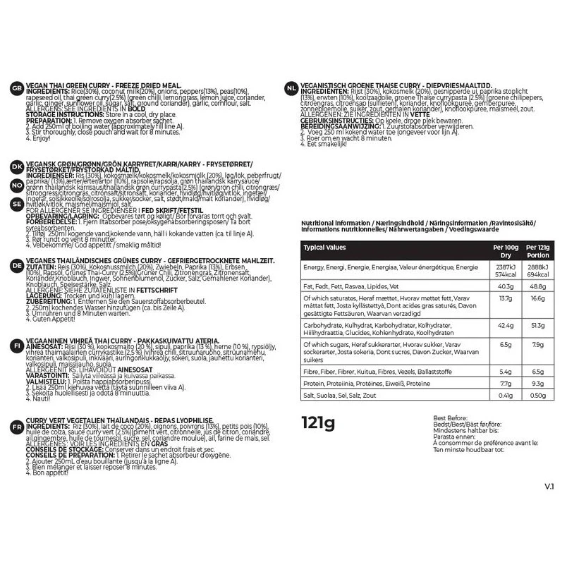 Basta aggiungere acqua calda, mescolare e in 10 minuti avrai un piccante curry verde thailandese a base vegetale, soddisfacente, gustoso e pieno di sapore autentico. Che tu stia facendo un'escursione, campeggio o semplicemente cercando un pasto veloce e sano, questo curry verde thailandese vegano liofilizzato ti porterà il sapore della Thailandia ovunque tu vada!