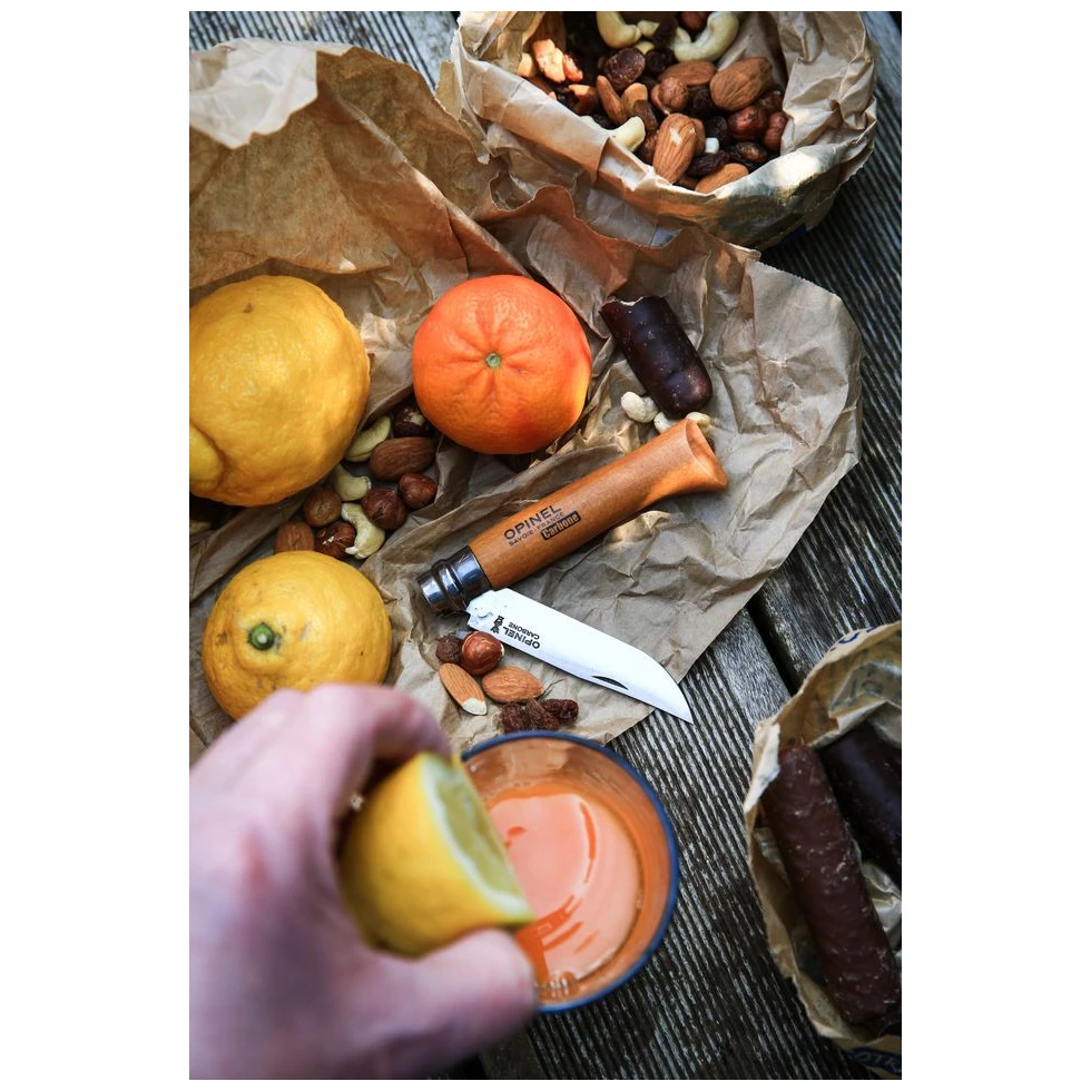 Scopri il microscopico aiutante: Opinel N°03 Carbon. Questo modello è uno dei più piccoli della gamma Opinel, ma eccelle comunque per qualità e tradizione. La lama in acciaio di 4 cm realizzata in acciaio al carbonio XC90 è caratterizzata da una combinazione armoniosa di durezza e durata, quindi rimane affilata anche dopo un uso frequente.