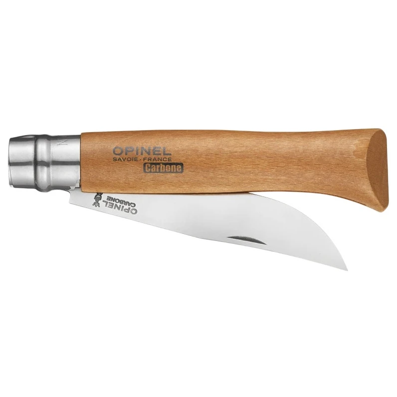 Opinel N°12 Carbon rappresenta l'apice della gamma di coltelli chiudibili classici del marchio Opinel. Per dimensioni e struttura, è adatto a un uso esterno intensivo, come l'agricoltura o la caccia. La sua lama di 12 cm è realizzata in acciaio al carbonio XC90, che si distingue per l'elevata durezza, l'eccellente qualità di taglio, la resistenza all'usura e la facile affilatura. Tuttavia, poiché l'acciaio al carbonio è più sensibile all'umidità, si consiglia di asciugare sempre la lama dopo l'uso e di oliarla occasionalmente.