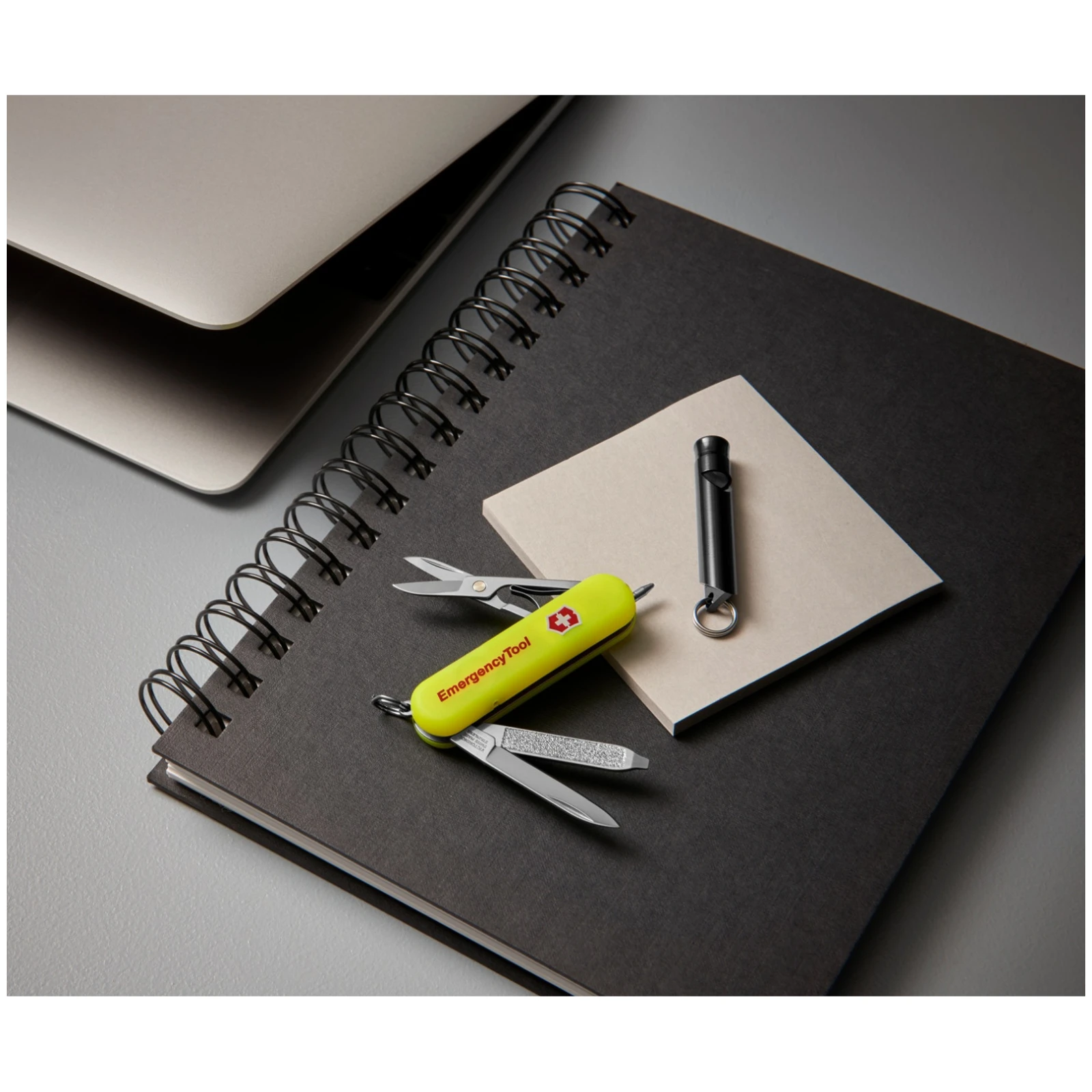Grazie alle sue dimensioni ridotte, è davvero molto adatto come portachiavi originale. Numero di funzioni 7, la dimensione del coltello è compatta 58 mm. Rispetto al modello base, il modello Lite è dotato di una luce a LED. Include anche coltello, lima per unghie con cacciavite, forbici, portachiavi, penna. Il suo guscio giallo brilla al buio. La confezione include anche un fischietto per segnalare la tua posizione in caso di emergenza.