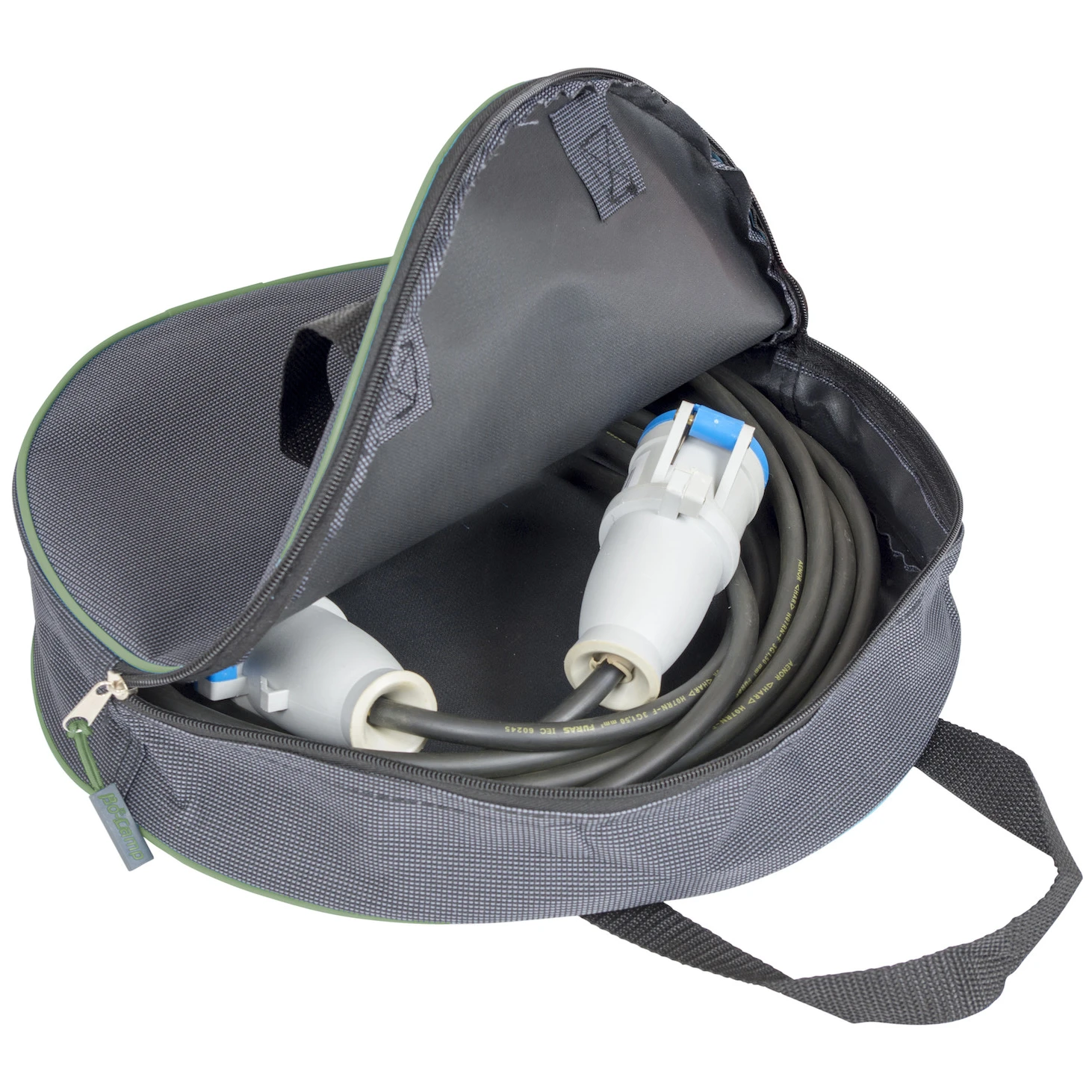 La resistente custodia per prolunghe è l'alleato ideale per un'organizzazione chiara e sicura dei cavi a casa, in garage e in viaggio. È realizzata in robusto poliestere Oxford 600D bicolore, resistente all'usura e all'umidità. Grazie alla chiusura a zip e alle robuste cinghie di trasporto, è facile da trasportare e protegge il cavo dall'aggrovigliamento, dallo sporco e dai danni meccanici.