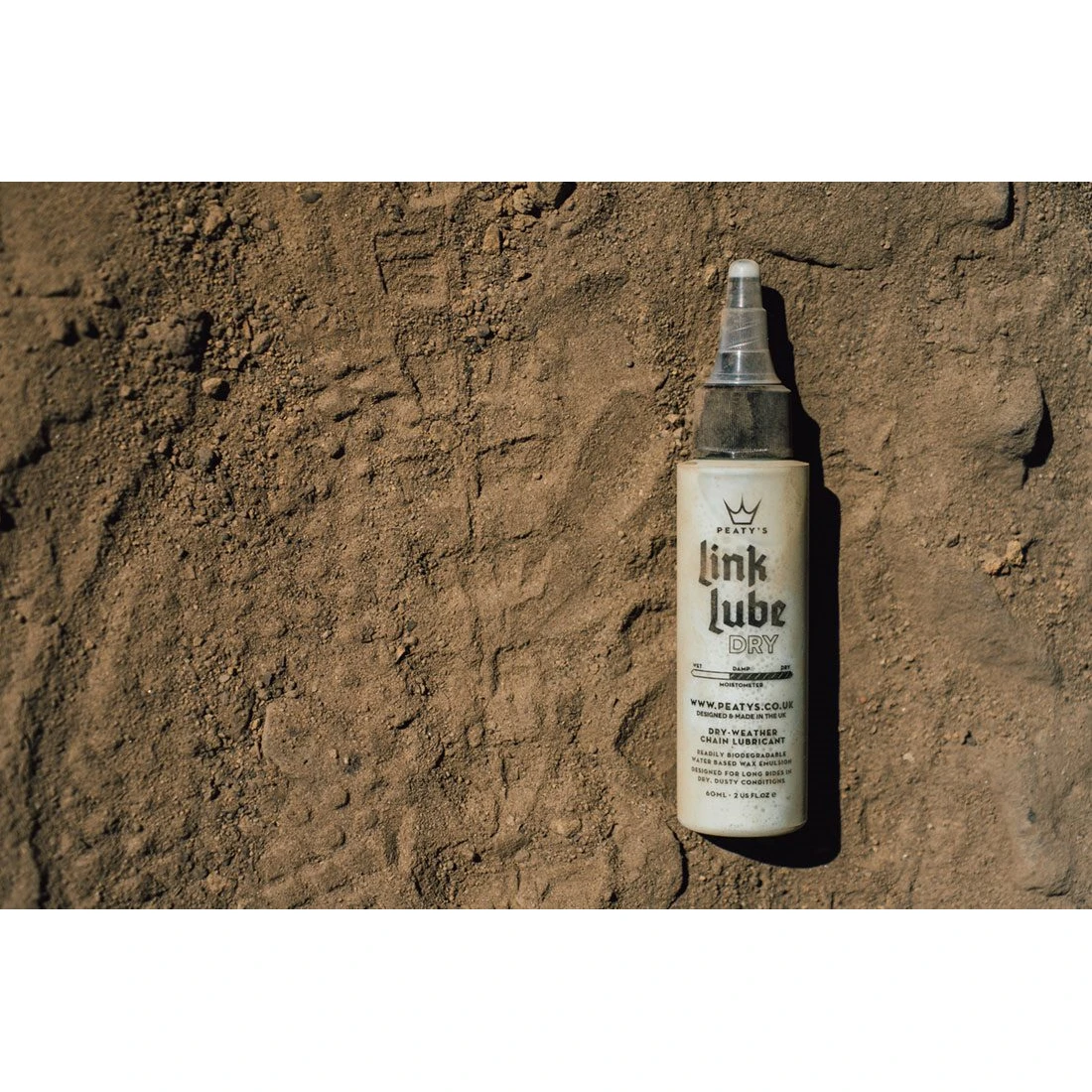 Peaty´s LinkLube Dry è un lubrificante per catene fatto su misura per condizioni secche e molto polverose. È a base di cera, la cui formula unica utilizza una miscela di cere sospese in un'emulsione a base d'acqua per offrire prestazioni di lunga durata. Garantisce un funzionamento fluido e silenzioso della catena. Il Linklube è stato progettato per le esigenze dell'Enduro World Series (EWS). Il lungo sviluppo lo rende uno dei preferiti da tutti i corridori di EWS, XC, strada e ciclocross. Linklube non deve essere applicato ai freni o alle pastiglie dei freni.