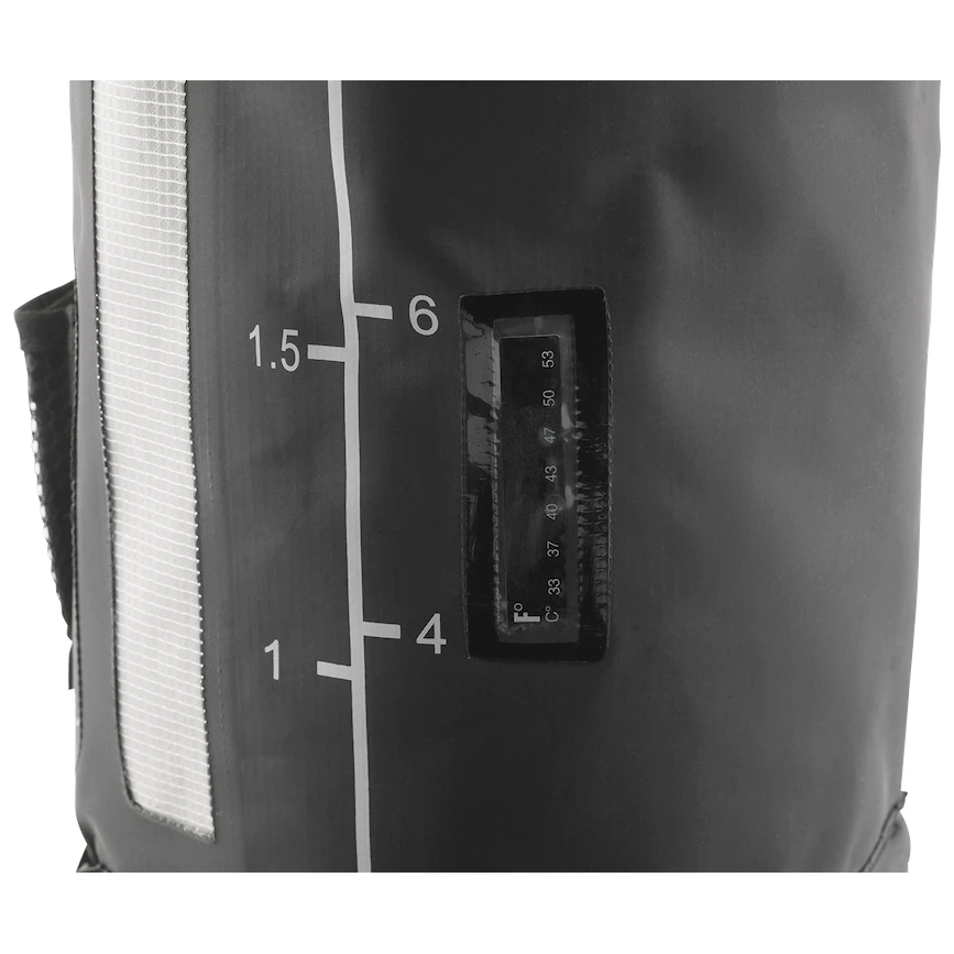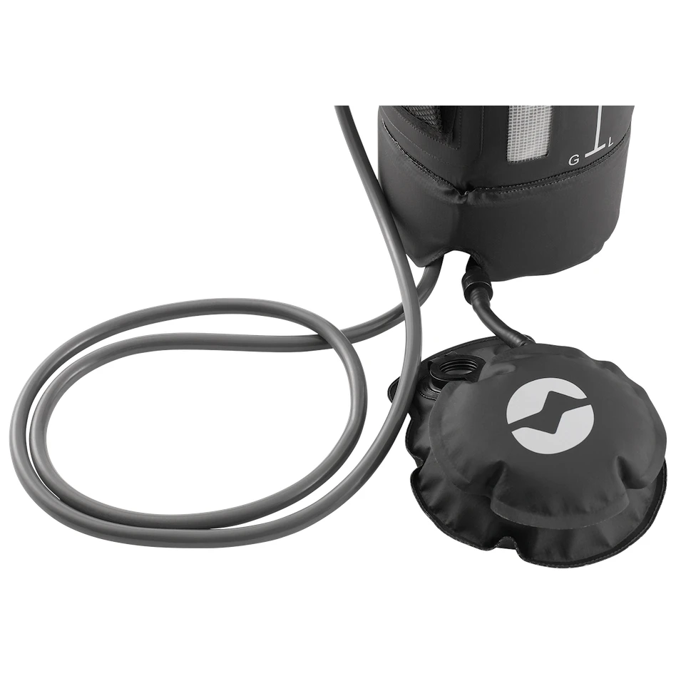 La doccia è realizzata in robusto PVC di colore nero, così l'acqua all'interno si scalda piacevolmente al sole. Quando non hai bisogno della doccia, grazie al materiale morbido puoi facilmente piegarla e riporla nello zaino. Dall'esterno è presente un termometro con una scala da 33°C a 53°C, che ti permette di avere sempre sott'occhio la temperatura dell'acqua, e un indicatore di livello trasparente. Il trasporto e il fissaggio sono più semplici grazie alla robusta maniglia. Il pompaggio dell'acqua è manuale, tramite una pompa manuale. L'acqua scorre quindi attraverso il tubo fino alla doccia, che è bloccabile nel caso in cui si abbia bisogno di fare la doccia senza usare le mani.