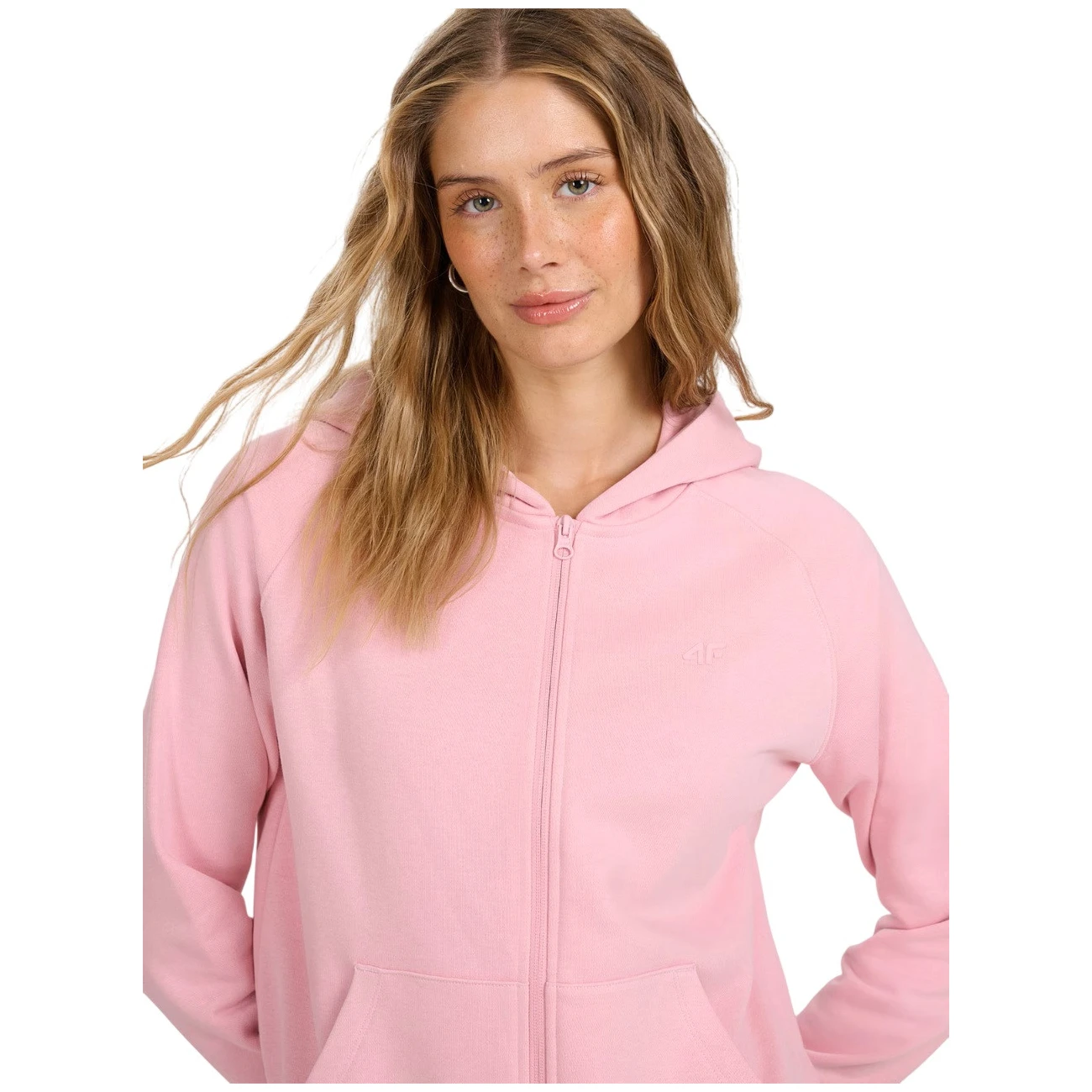 La felpa da donna con cappuccio e zip Sweatshirt F1763 4F è un capo pratico che amerai subito. È progettata con un taglio regular classico, che valorizza la figura e offre allo stesso tempo comfort di movimento. Le maniche raglan inoltre non limitano i movimenti, così ti sentirai a tuo agio anche durante una giornata attiva. Il materiale utilizzato combina 79% cotone e 21% poliestere, rendendo la felpa morbida, piacevole al tatto, ma allo stesso tempo mantiene la forma e resiste all'usura.