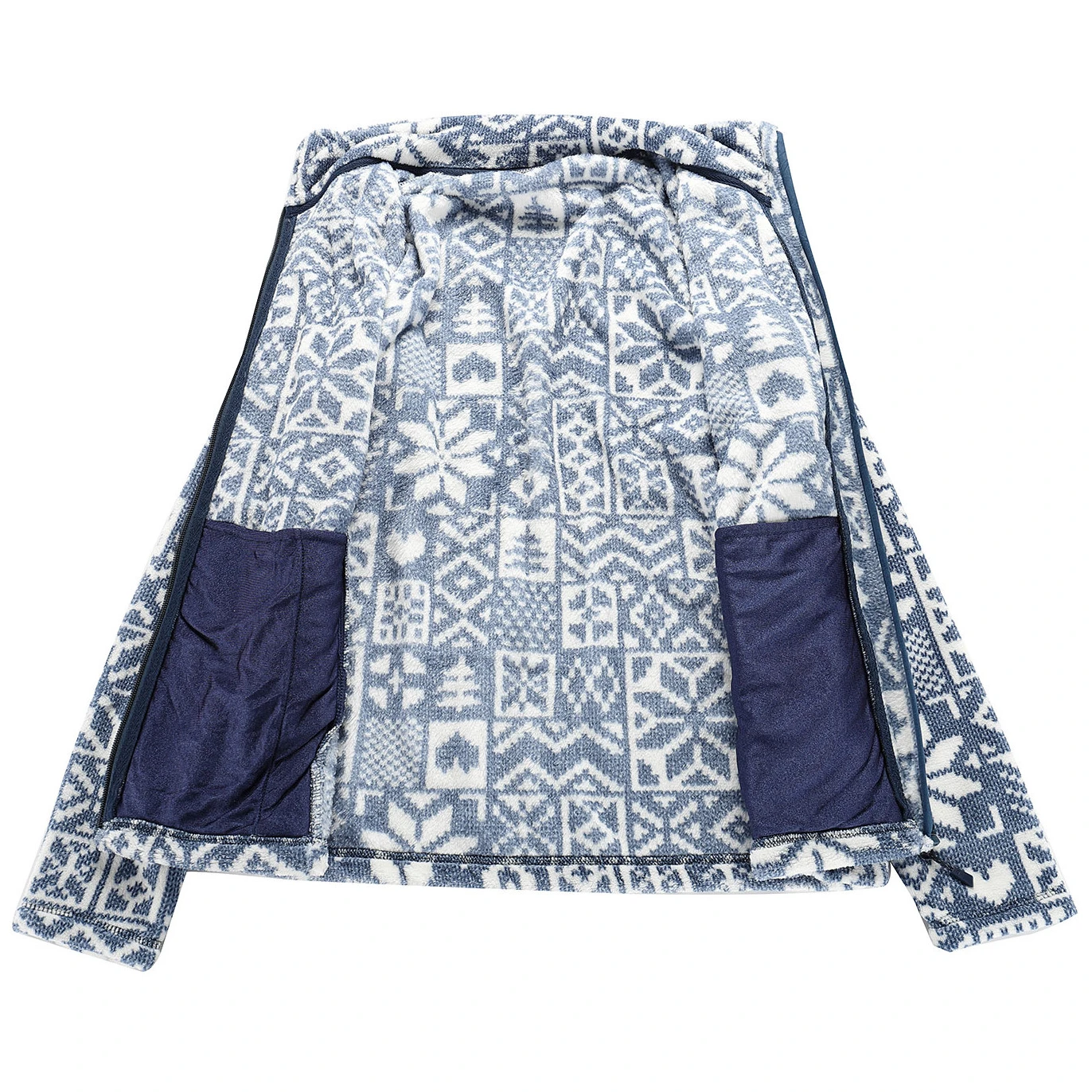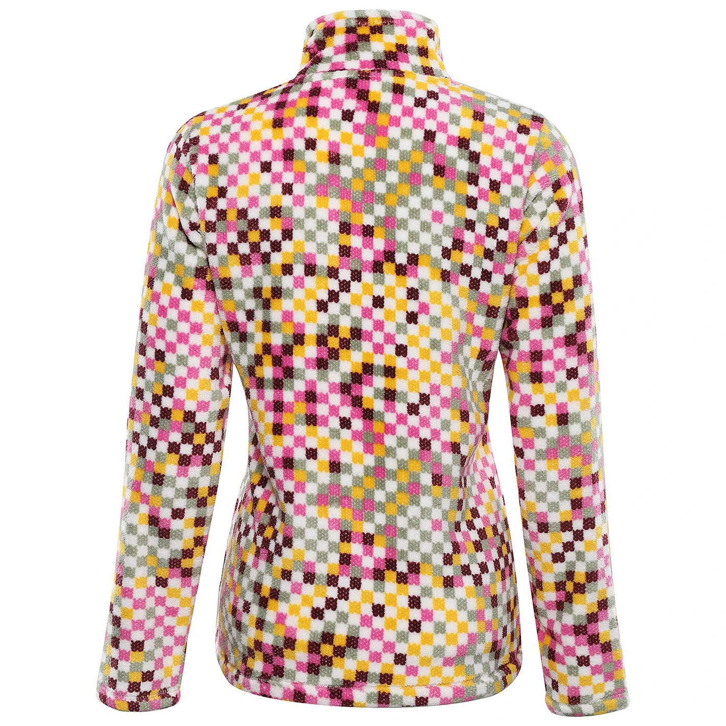 La felpa ha un taglio semiaderente Regular Fit che si adatta alla figura femminile e consente la libertà di movimento durante le varie attività. La lunga zip a contrasto e il collo alto offrono una ventilazione variabile e protezione dal freddo. Il design interamente stampato, l'elegante applicazione sulla parte anteriore e la moderna combinazione di colori conferiscono alla felpa un aspetto attraente, rendendola adatta non solo per l'escursionismo o il soggiorno nella natura, ma anche per gli outfit urbani.