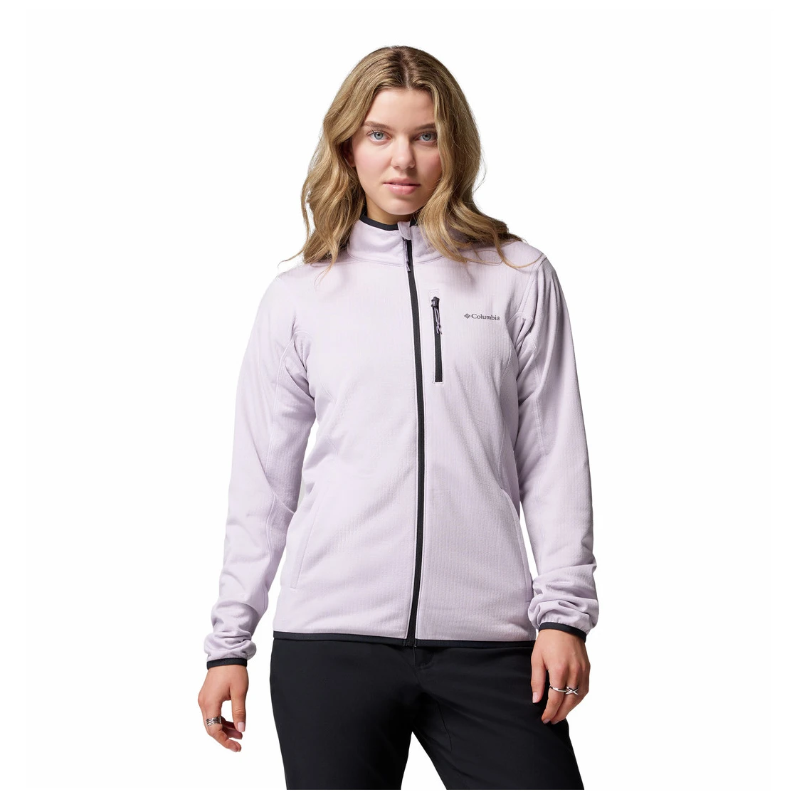 La felpa da donna Columbia Essential Hike™ Grid Fleece Full Zip è leggera, calda e ideale per l'escursionismo e l'uso quotidiano. Il materiale in pile grid di poliestere riciclato offre un calore confortevole e un'eccellente traspirabilità. La tecnologia Omni-WICK™ allontana rapidamente l'umidità dal corpo, mantenendoti asciutto e comodo. La felpa ha una tasca con zip sul petto per riporre in sicurezza piccoli oggetti e pratiche tasche per le mani. I bordi elastici su maniche, orlo inferiore e colletto assicurano una vestibilità confortevole e proteggono dal vento.