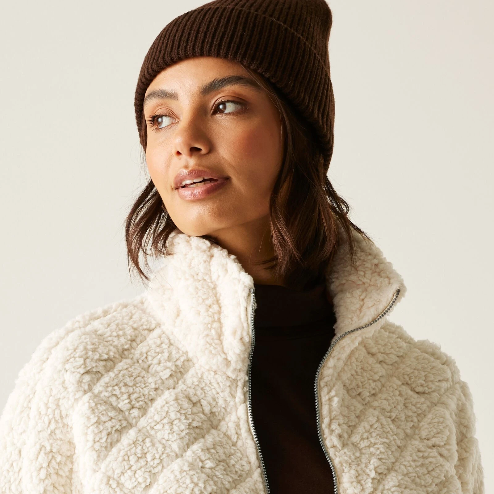 La felpa da donna Alaiya di Regatta è realizzata in materiale felpato con effetto losanga e treccia, ha le spalle scese per un look rilassato e due pratiche tasche. Ideale per un caffè o per le giornate fredde.