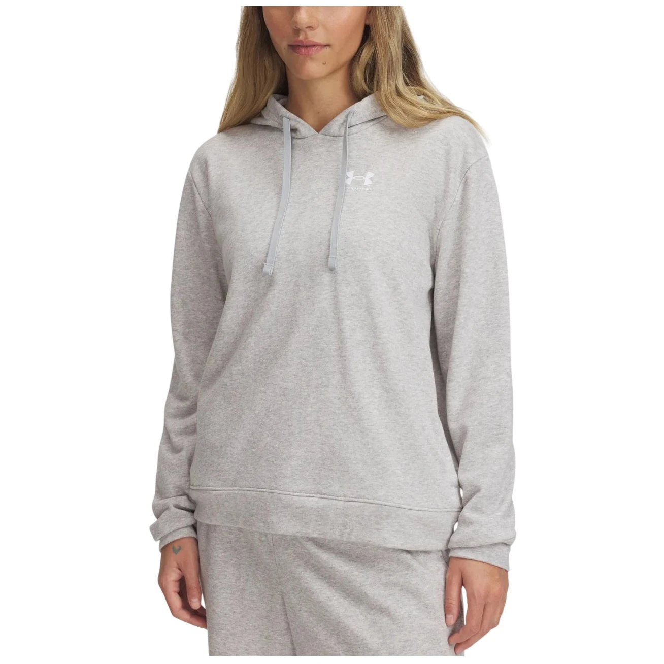 Felpa con cappuccio Rival Terry da donna del marchio Under Armour dalla vestibilità comoda. Il materiale utilizzato elimina l'umidità e quindi si asciuga più rapidamente. La leggera spugna francese ha uno strato esterno liscio e uno strato interno caldo e morbido. Se volete stare comodi e al caldo prima o dopo la partita, questa felpa con cappuccio è la scelta più ovvia.