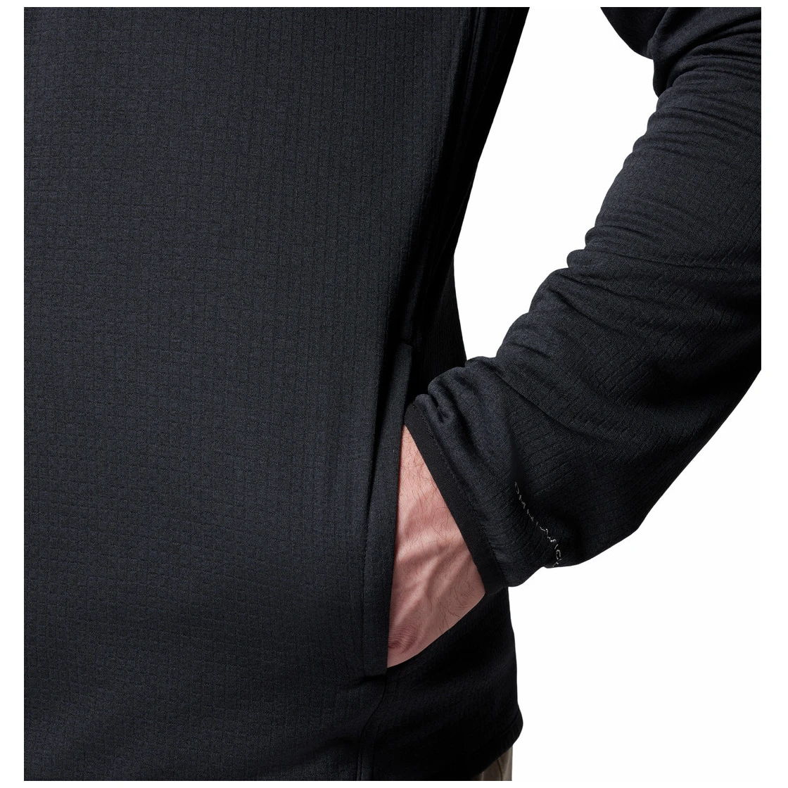 La felpa ha una tasca con zip sul petto per riporre in sicurezza piccoli oggetti e pratiche tasche per le mani. I bordi elastici su maniche, orlo inferiore e colletto assicurano una vestibilità confortevole e proteggono dal vento.
