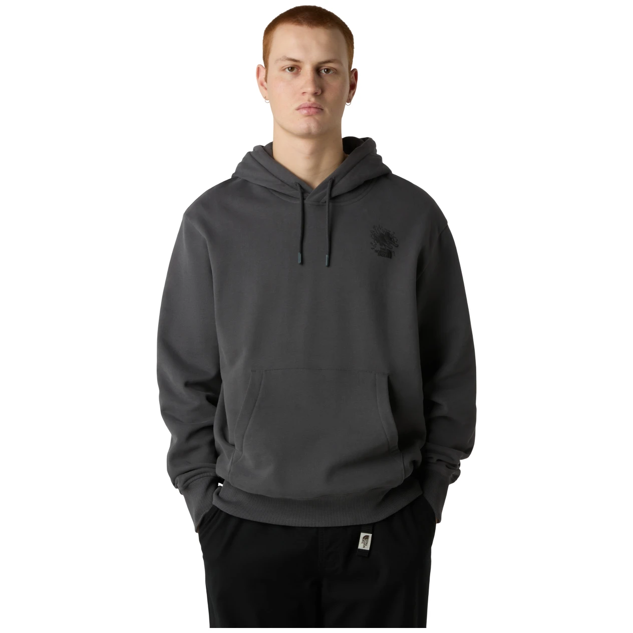 È realizzata in 100% cotone, che offre un'eccellente traspirabilità e comfort per tutto il giorno, esaltati dal taglio ampio e dalle spalle scese. Il cappuccio a due pezzi è regolabile tramite coulisse, sul davanti è presente una grande tasca a marsupio e sui polsini e sull'orlo inferiore sono presenti polsini a coste. Sul retro si trova una grafica espressiva che conferisce alla felpa un aspetto unico.