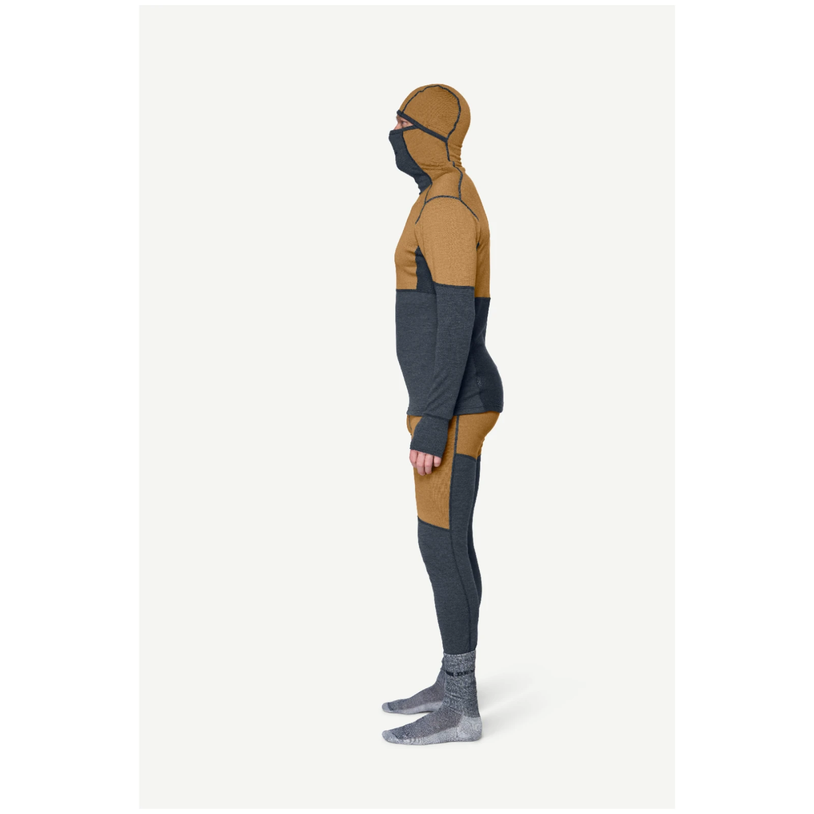 La struttura a griglia Egga trattiene il calore in piccole sacche d'aria, il materiale Expedition isola e regola l'umidità, mentre i pannelli Wool Mesh assicurano la ventilazione durante gli sforzi elevati. Il taglio ergonomico con parte posteriore allungata, le cuciture piatte e i polsini a doppio strato con fori per i pollici aumentano il comfort quando si indossa. Il cappuccio aderente si adatta sotto il casco e il collo alto con occhielli di ventilazione aiuta a dissipare l'umidità dalla bocca.